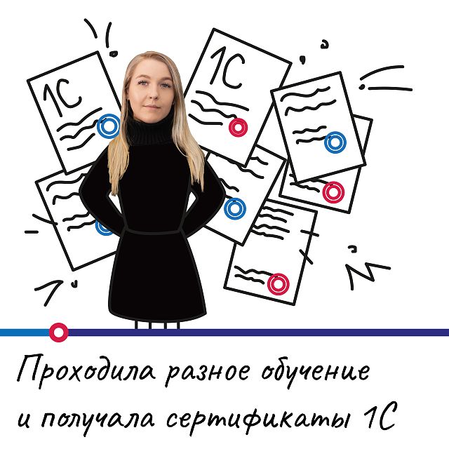 За все это время я приобрела множество ценных навыков и знаний. Получила сертификаты 1С и проходила обучения в Инфостарте для повышения квалификации. Приобрела навыки анализа сложных ситуаций и поиска оптимальных решений. Научилась быстро адаптироваться к изменениям и находить выходы из непредвиденных обстоятельств, что является важной частью работы в проектной деятельности. Освоила новые инструменты и технологии, которые помогли мне в выполнении моих обязанностей.