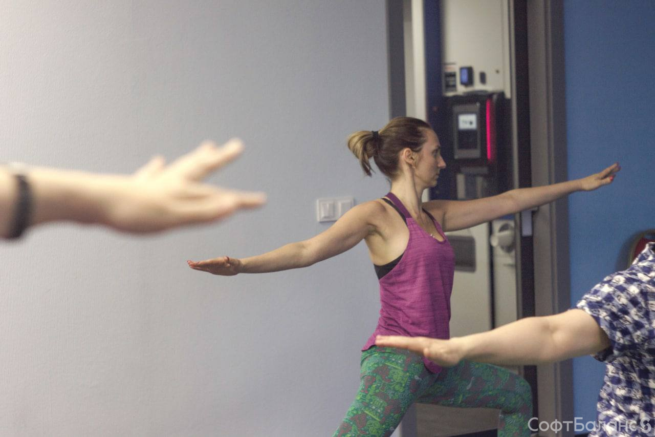 Раз в неделю в нашем офисе проходят тренировки по йоге. Их ведёт тренер Катерина из студии йоги SOVA по средам в 18:00 в конференц-зале.