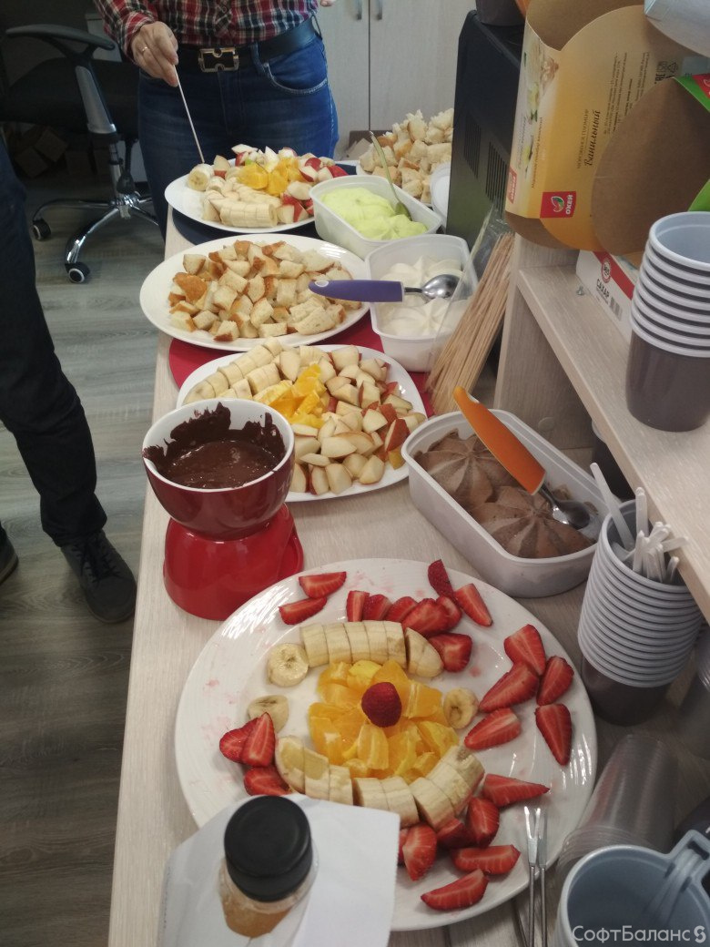 Департамент Обеспечения и Развития также решил завершить длинную рабочую неделю празднованием «Дня весны» - готовили сырное и шоколадное фондю, угощались фруктами и свежевыжатыми соками.