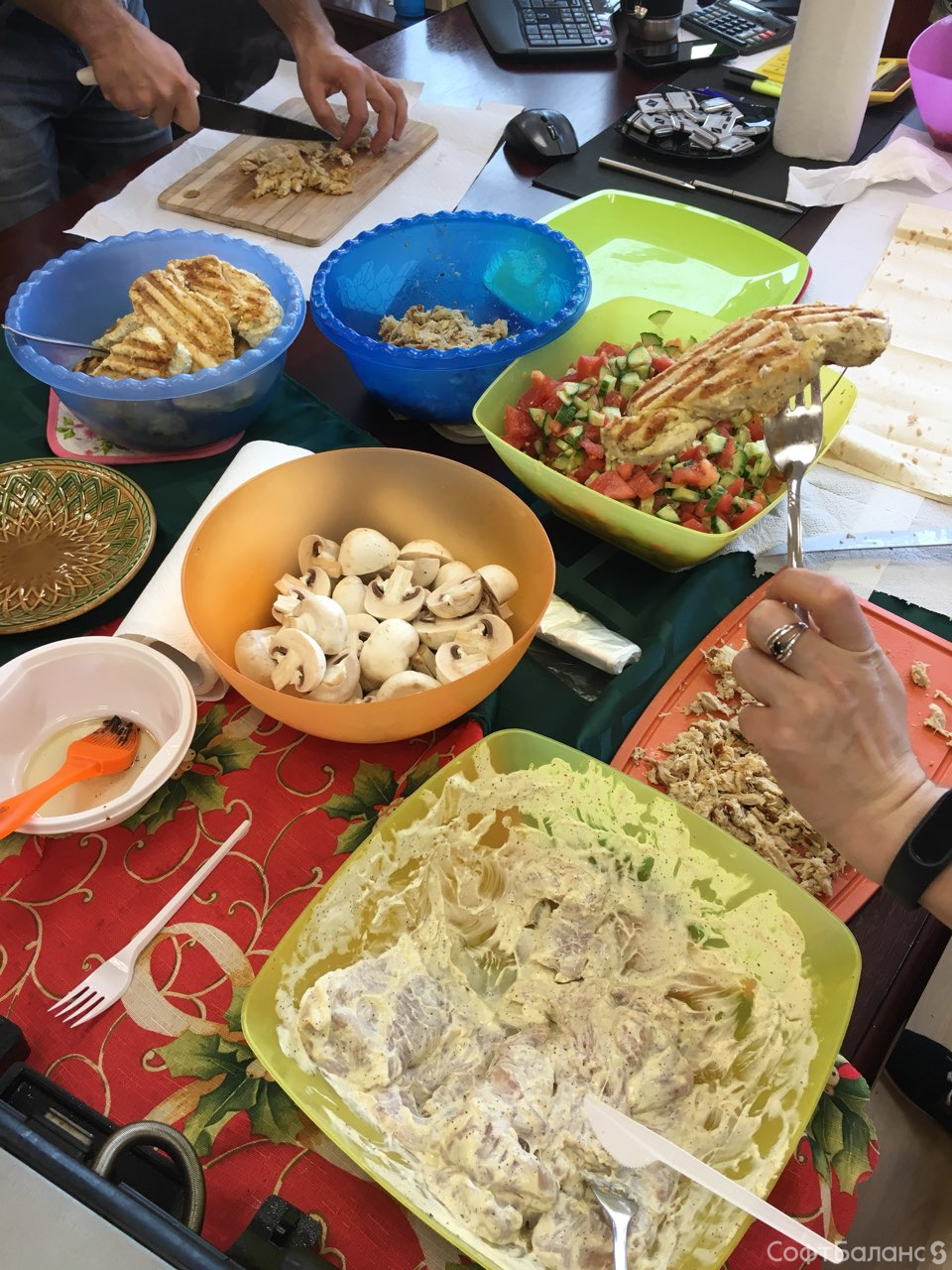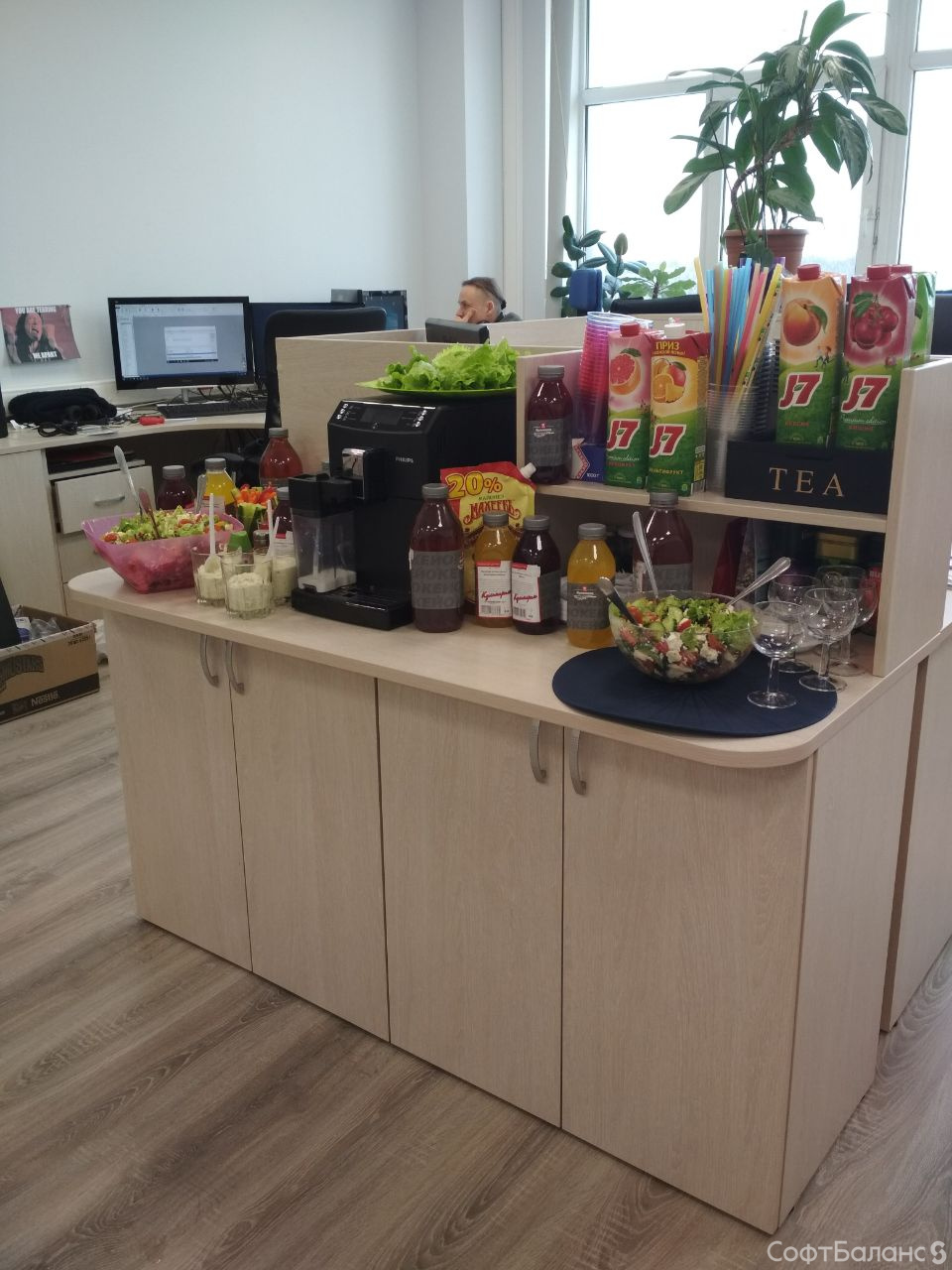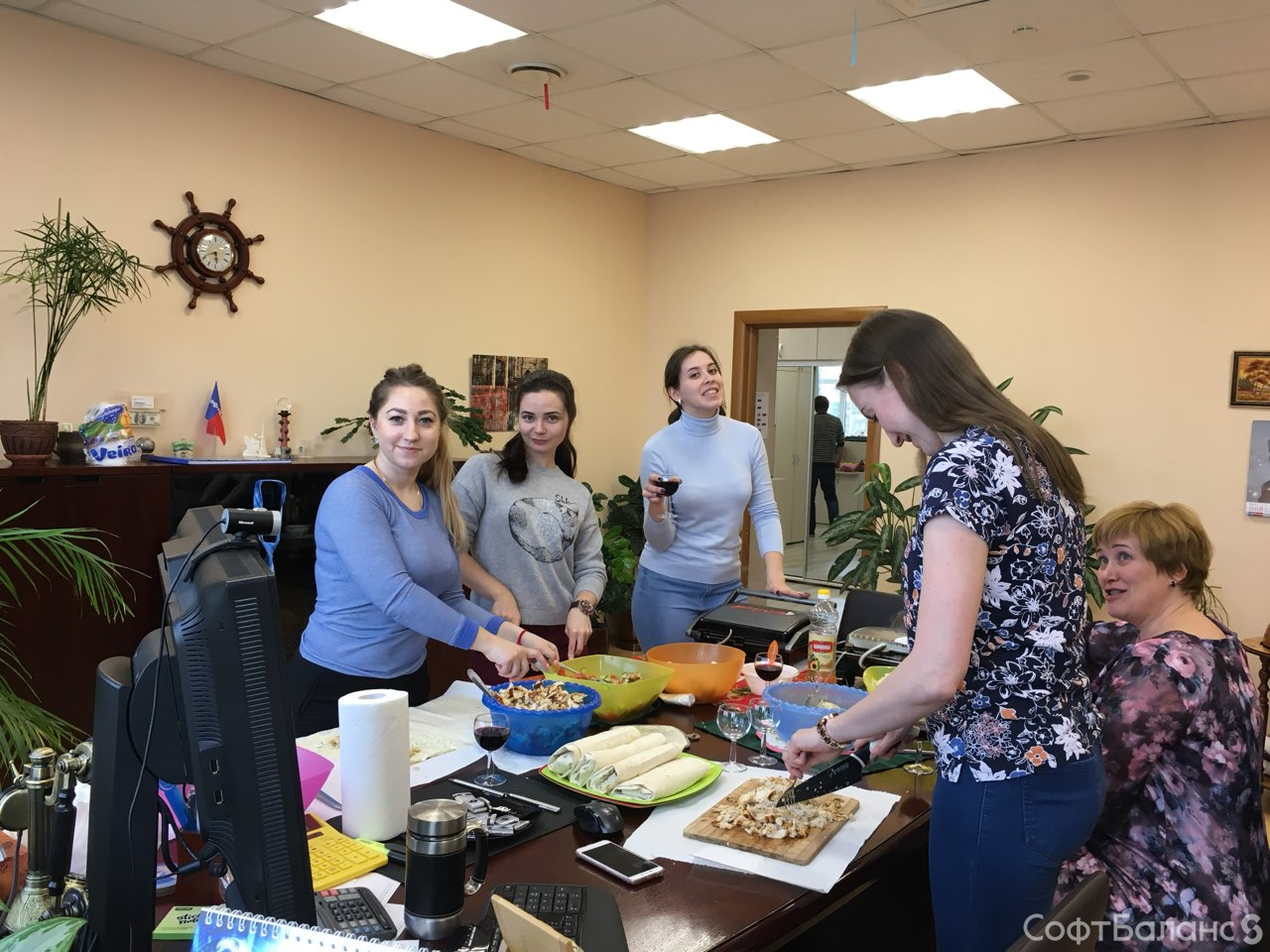В марте Департамент Обеспечения и Развития отметил новоселье! Коллектив подошел к обновлению своего рабочего пространства очень серьезно и творчески – тщательно продумывали концепцию помещения и расположения рабочих мест, подбирали мебель и цвета. Была оборудована удобная «чайная» зона, а еще в департаменте появилась новая кофемашина. Вовлечены в увлекательный процесс оказались все «жильцы» ДОР! И 23 марта состоялось долгожданное новоселье! Женский коллектив расстарался и приготовил угощение – домашнюю шаверму и закуски из свежих овощей.