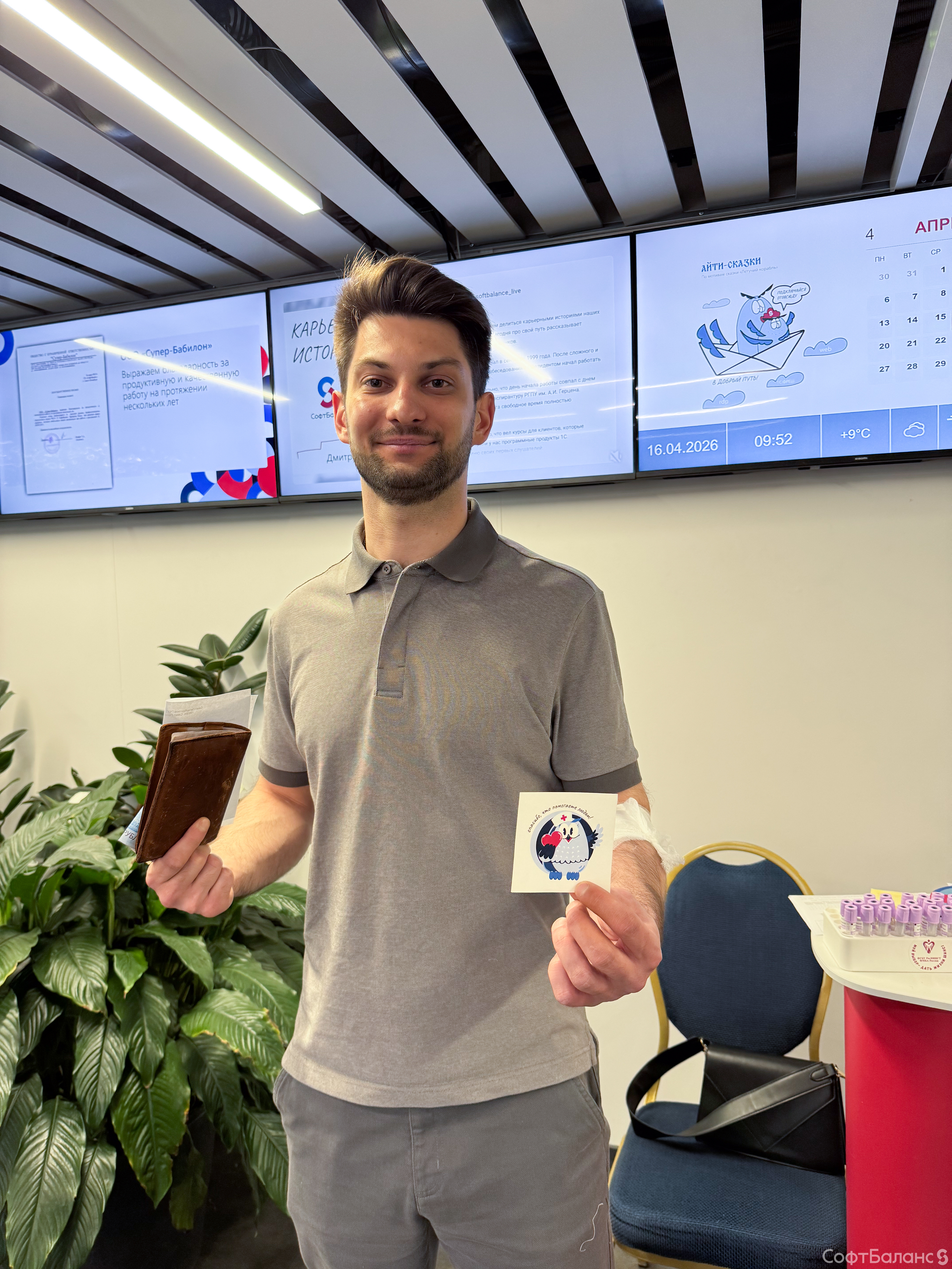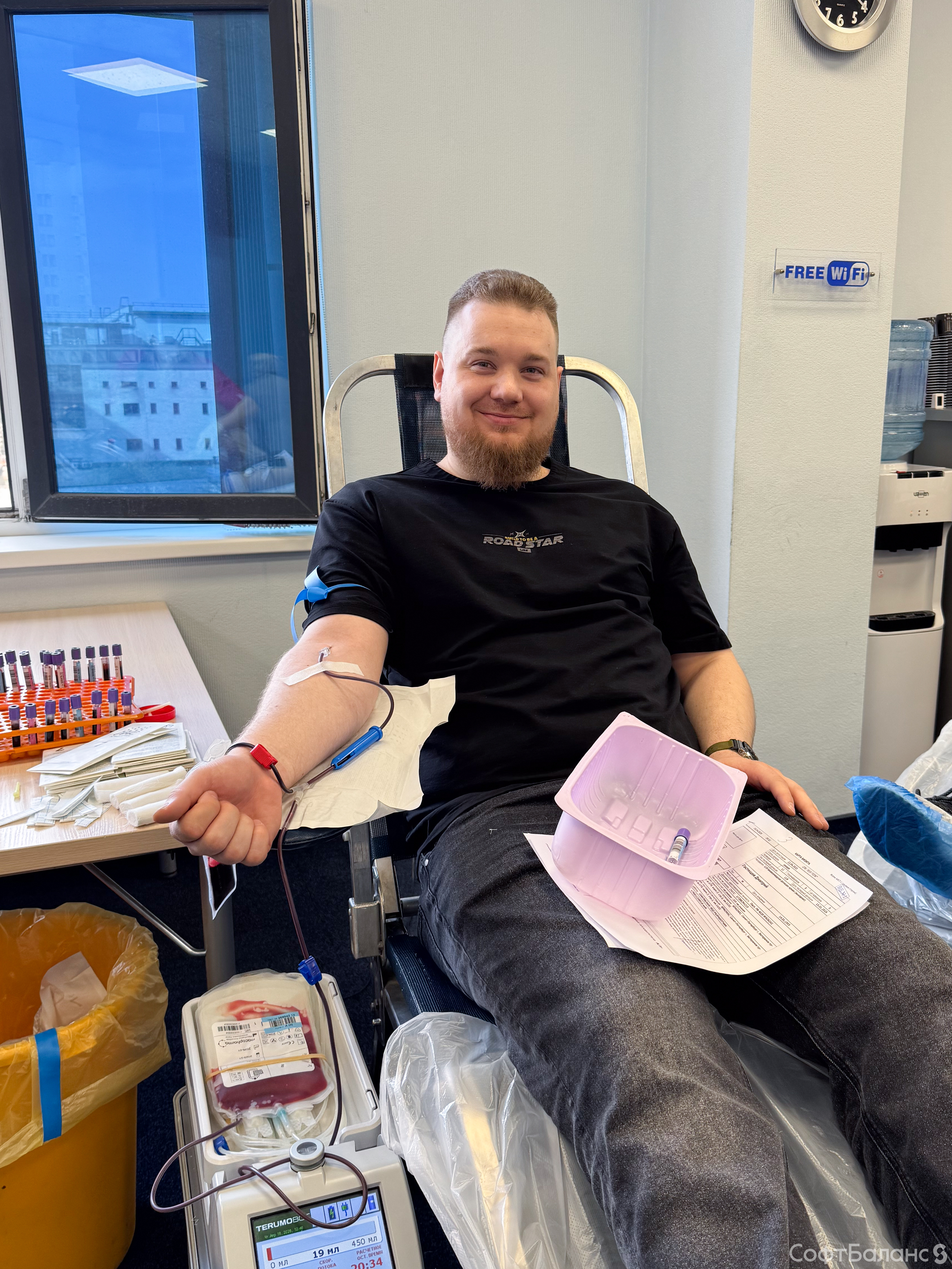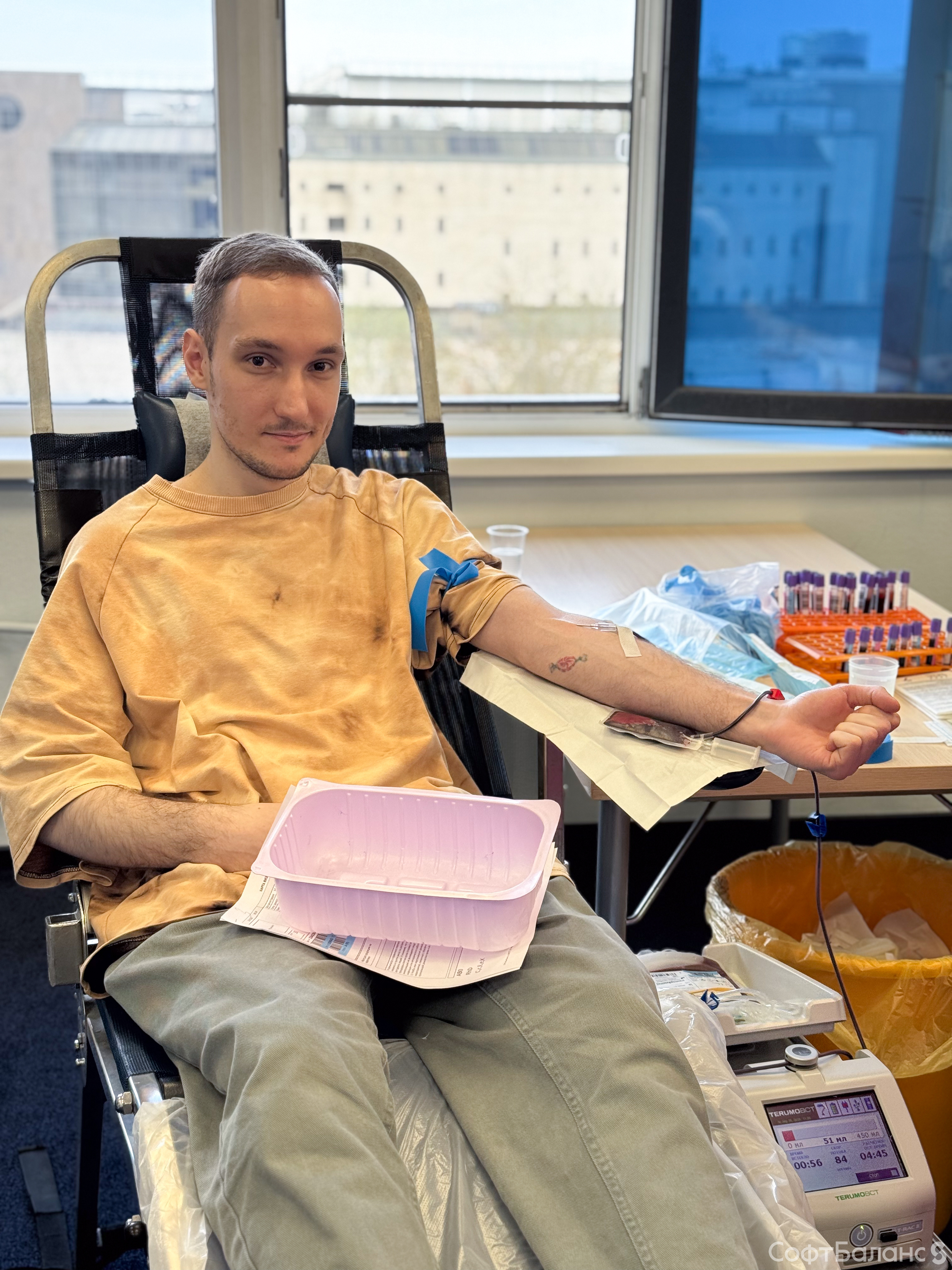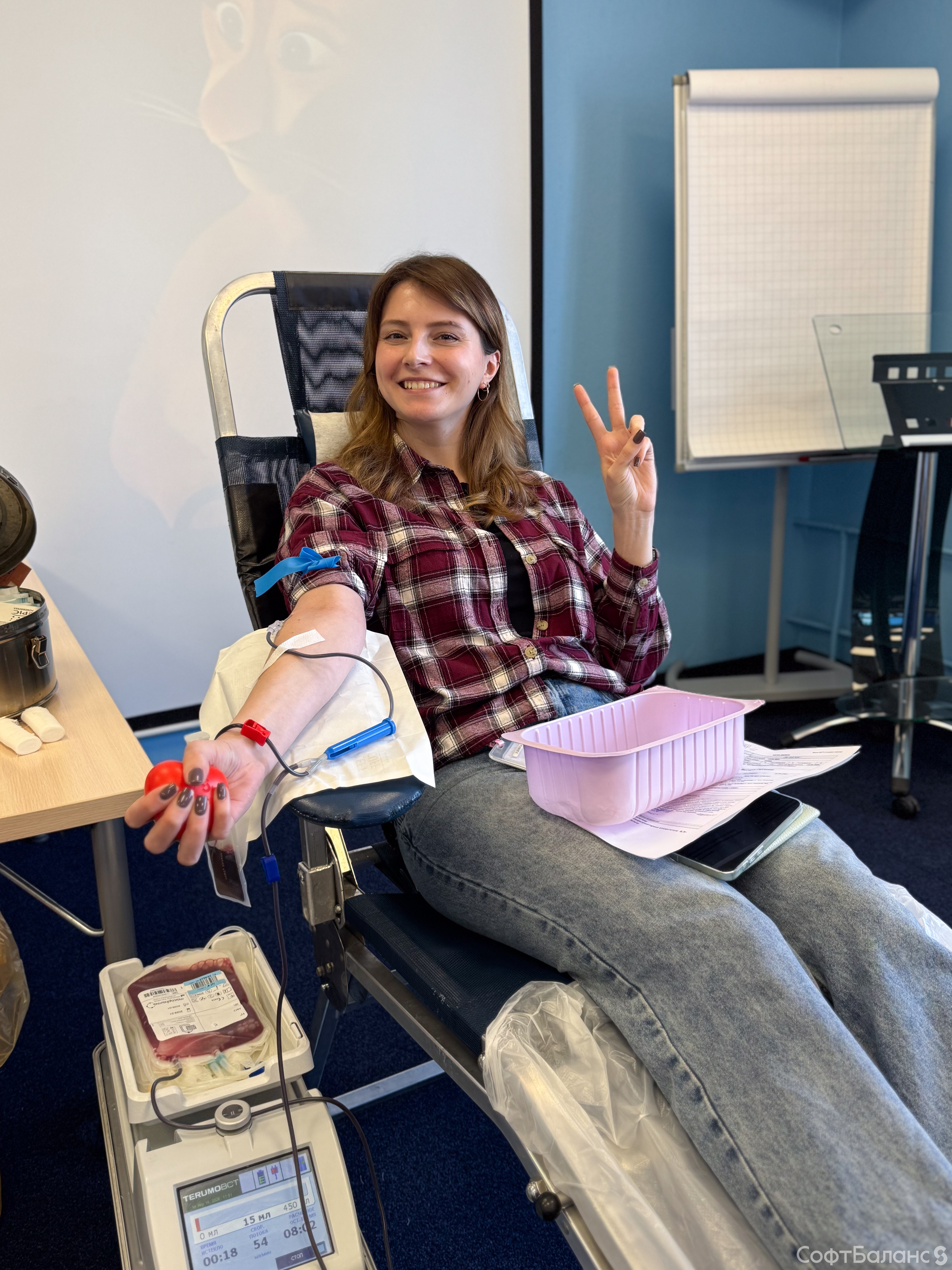 Вчера в офисе СофтБаланс прошел день донора. В этот раз было рекордное количество желающих сдать кровь - 66 человек. Из них до донации допустили 53 человека. Да, так бывает, поэтому стоит заранее готовиться к донации и ознакомиться со всеми рекомендациями.