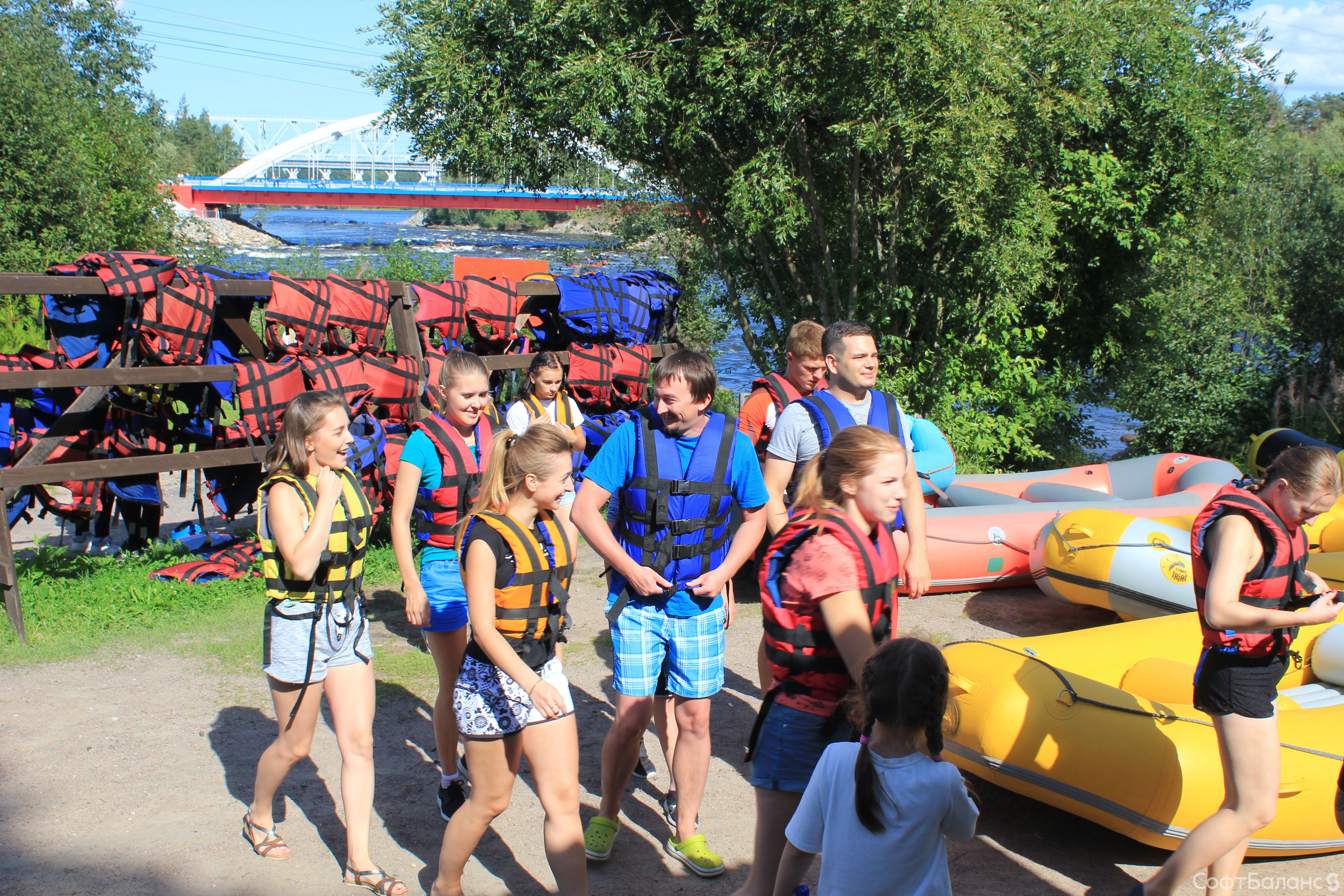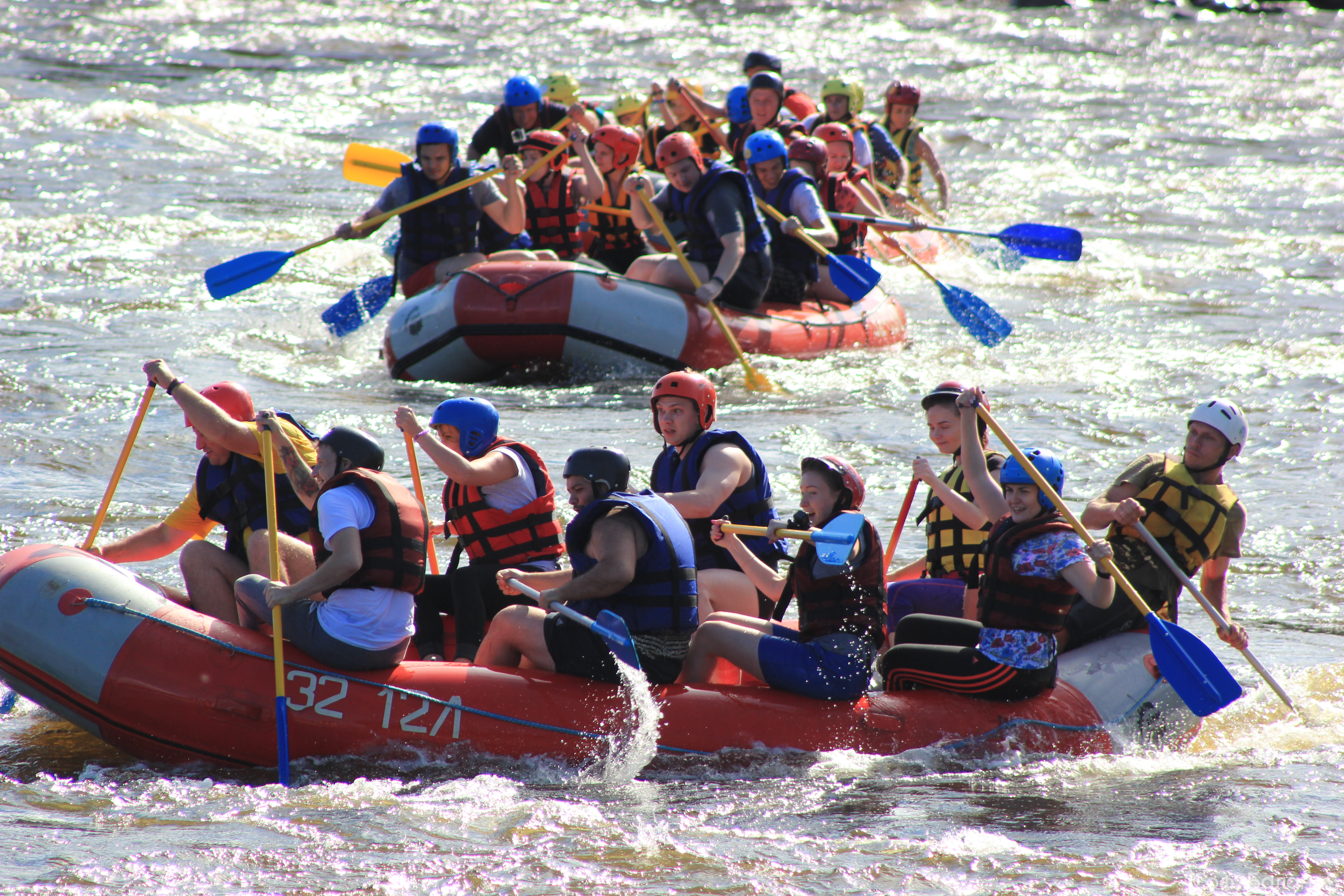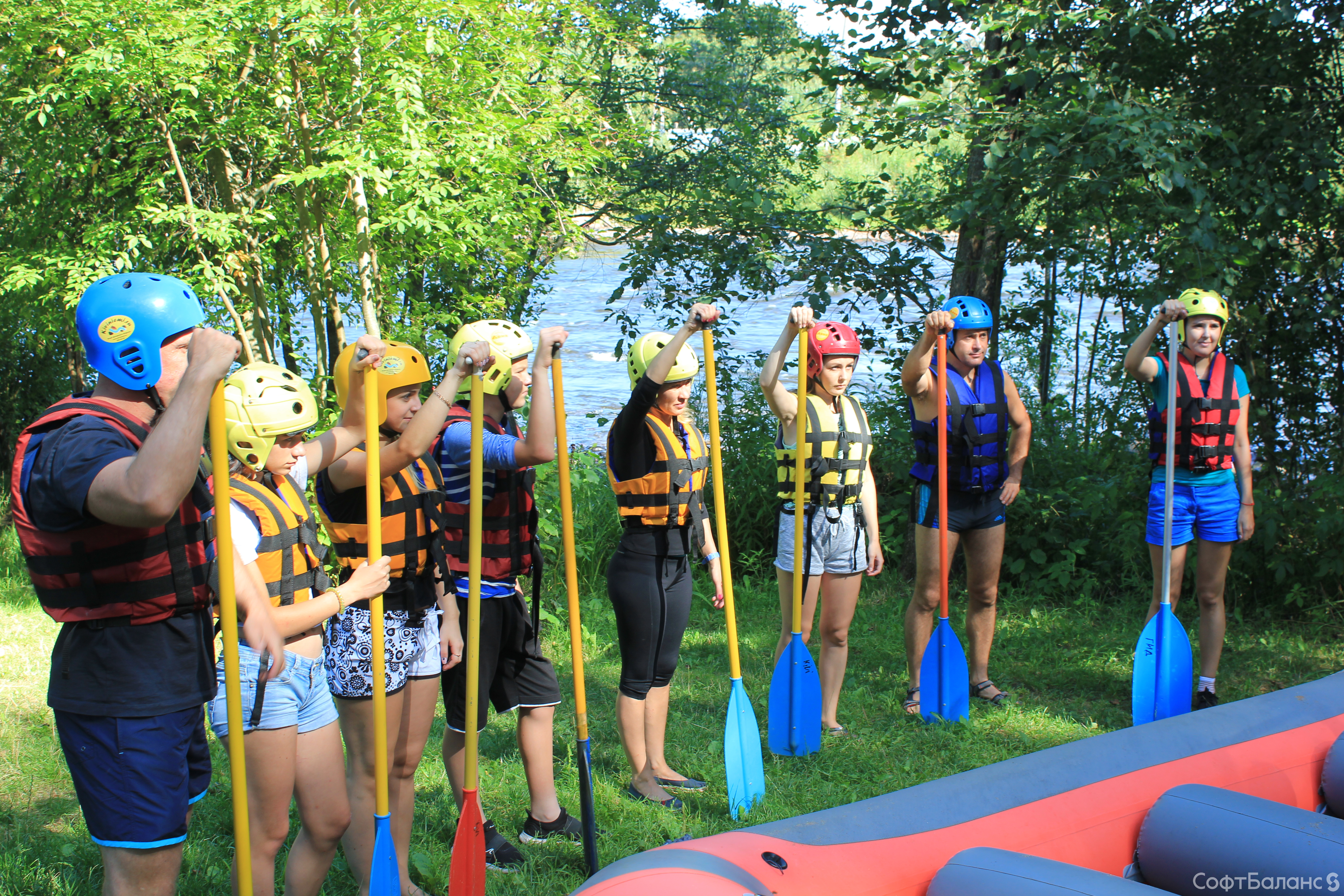 Субботний день 11 августа для Департамента Обеспечения и Развития прошел под девизом «Несем спорт в массы!», ведь мы отправились на рафтинг в Лосево. Для многих этот сплав стал дебютным и подарил непередаваемые эмоции! Коллеги из Департамента были разделены на команды, конечно же, каждая со своим капитаном и названием. Для начала мы немного потренировались – и сплавляться, и лодку таскать: спасибо сильному мужскому плечу, но и некоторым девушкам также досталась эта почетная миссия. Но справились все на ура! А затем приступили к соревнованиям: спуск по горной реке на скорость, да еще когда нужно коснуться трофея быстрее других команд, – это было действительно захватывающе! Все команды очень старались победить, но призы на берегу достались в итоге всем – брызги шампанского и купание в озере! А самое главное – веселье и положительные эмоции!