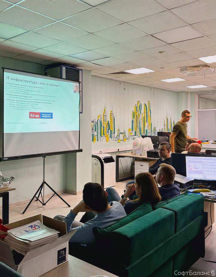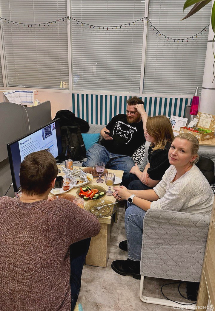 Годовое собрание – это словно новый год в офисе. Команды собираются в своих кабинетах, накрывают столы и ждут начала трансляции. Заходят друг к другу в гости и поздравляют с достижениями.