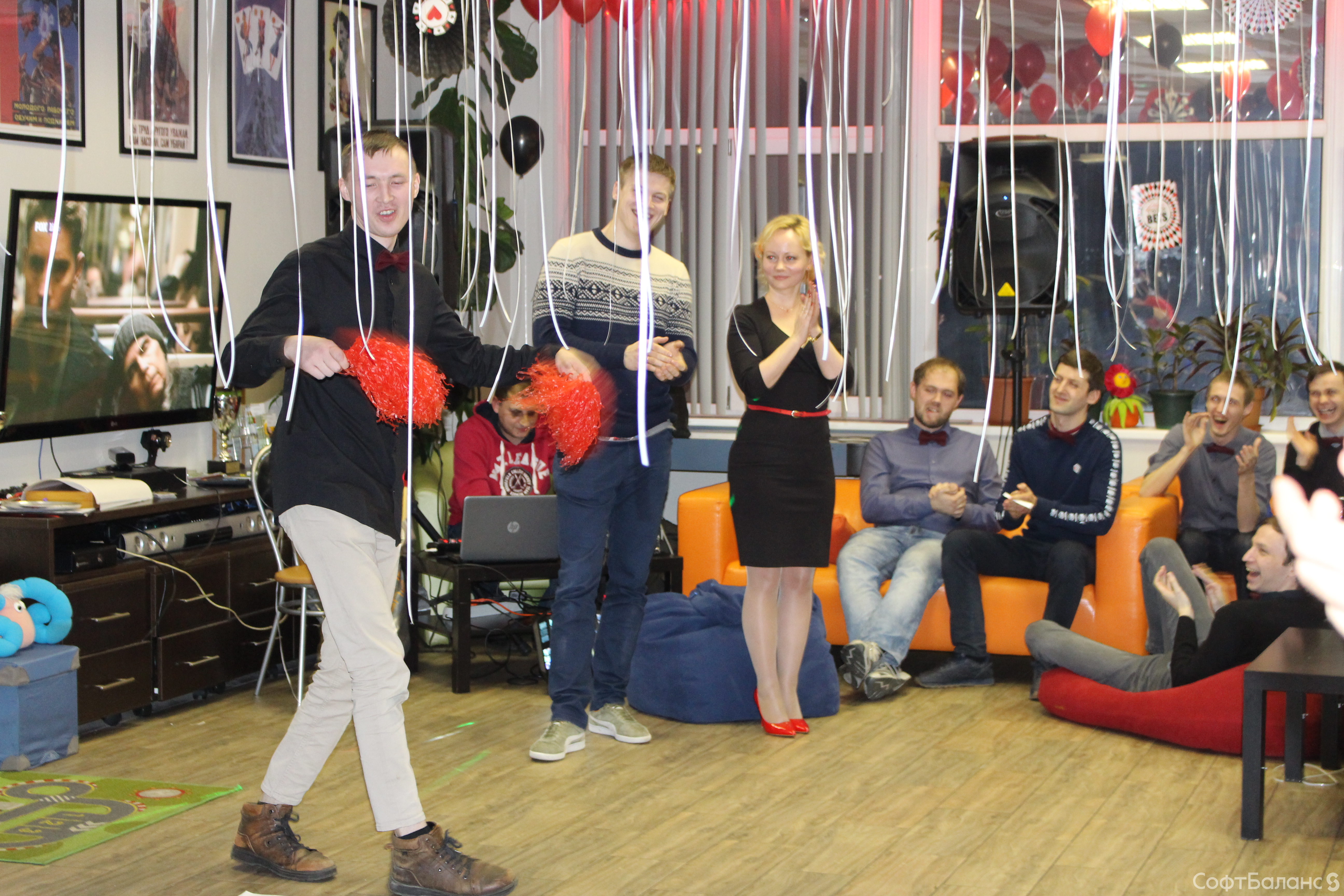 Каждый отдел старался удивить своих мужественных коллег – например, Партнерский отдел подарил своим мужчинам полет в аэротрубе, а девушки из Отдела Внедрения устроили для своего подразделения квест по офису.