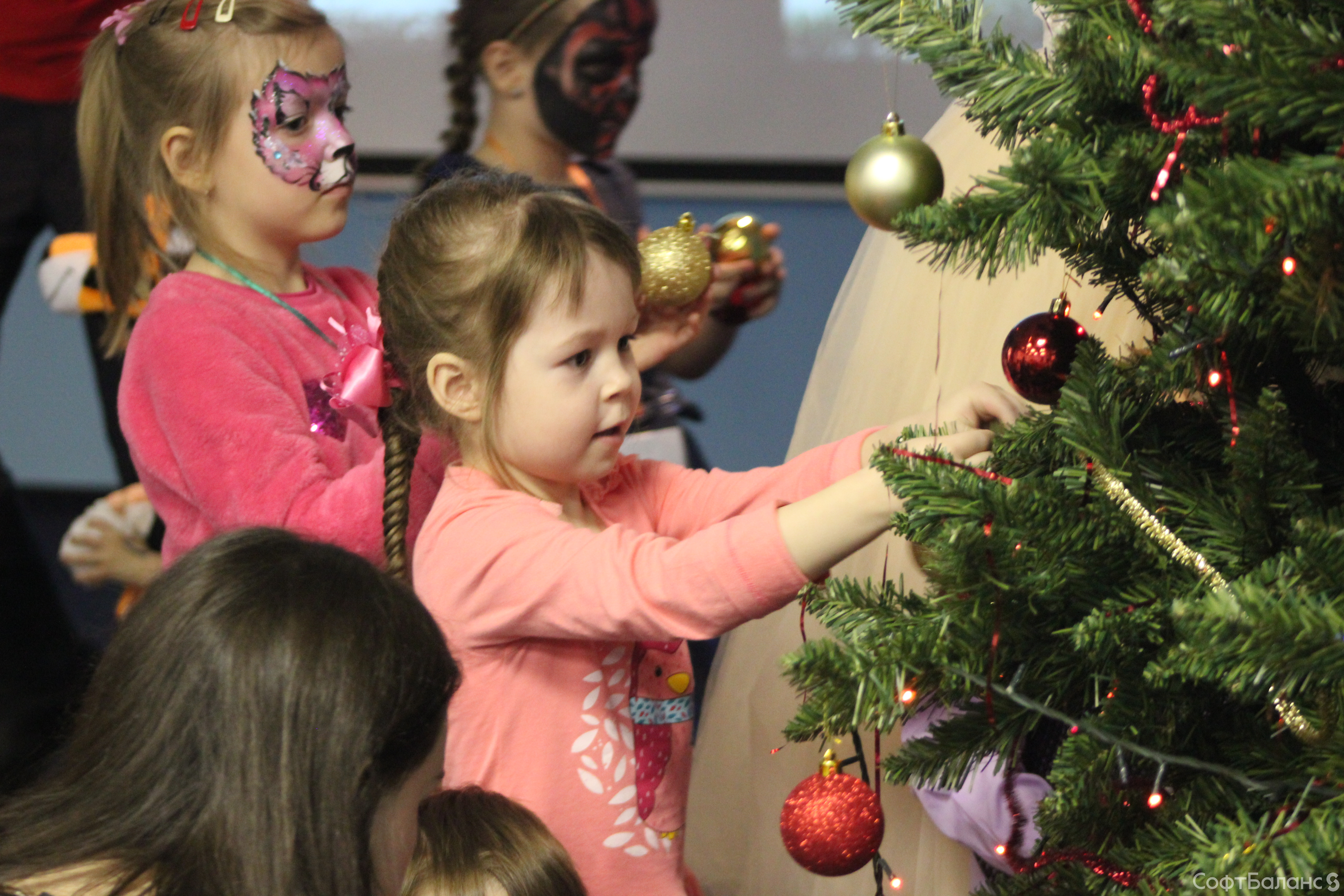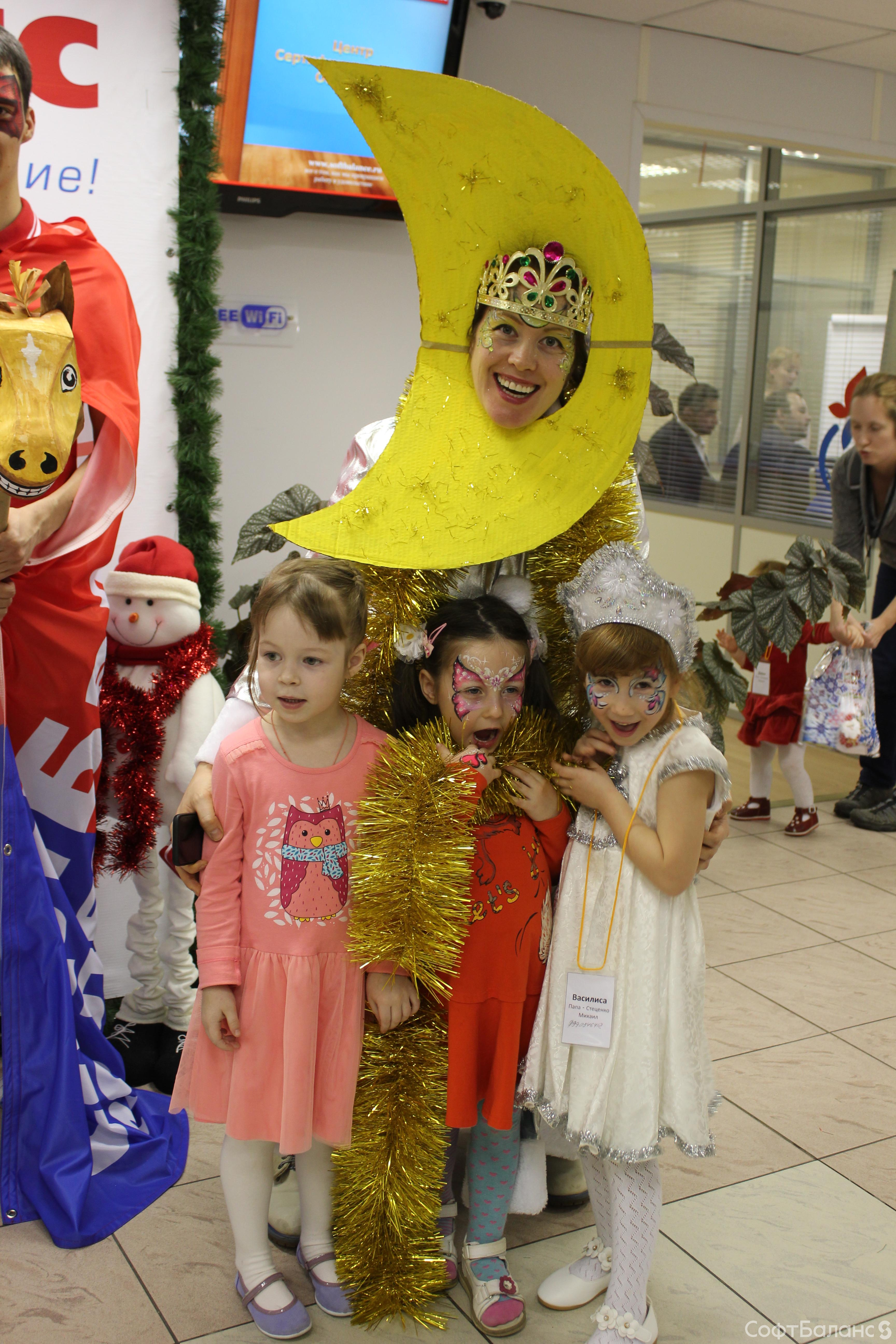 Веселая Луна, бабка Ежка, Принцесса, Дед Мороз и Снегурочка поздравили самых маленьких гостей, устроив новогодний спектакль, а потом закружив их в веселых танцах. Вместе с волшебными героями малыши нарядили Елочку и заставили ее засиять тысячью огоньков!