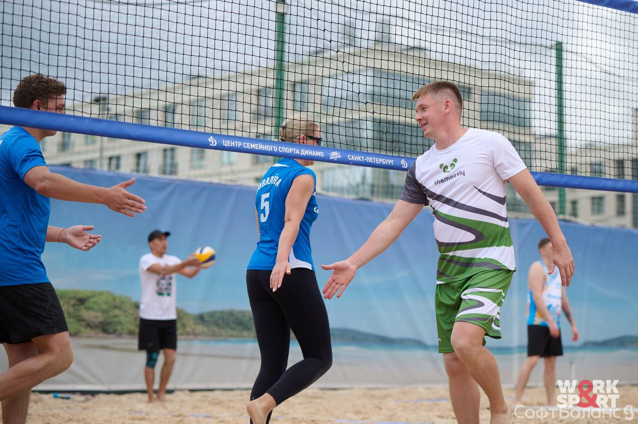 На площадке Центра пляжного спорта Динамо собрались 12 команд из разных компаний, чтобы сыграть в волейбол на песке.