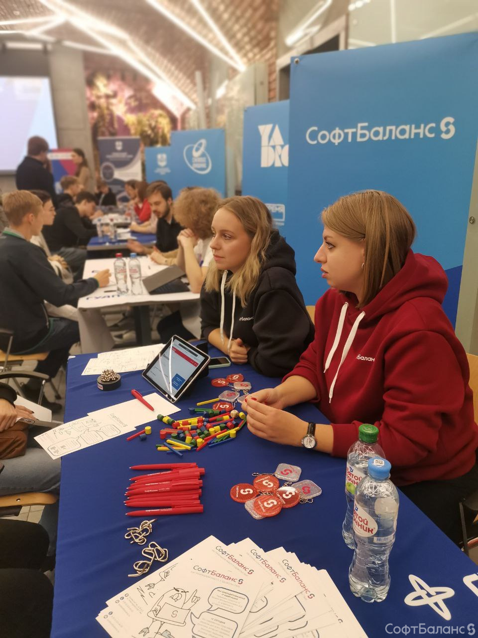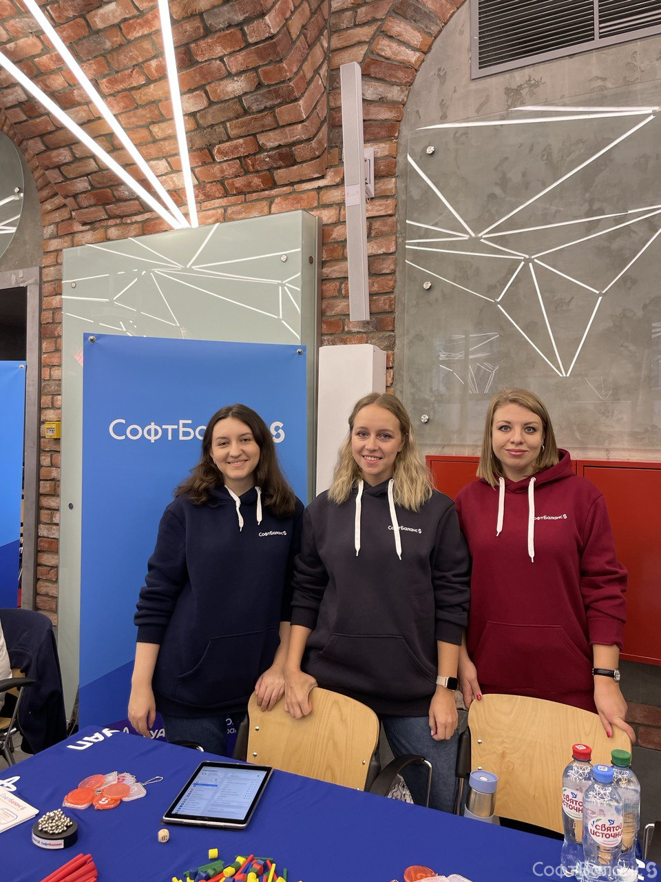 На ярмарке СофтБаланс представляли девушки из отдела персонала: Оля Суховнина, Маша Панина и Лера Гоголь.