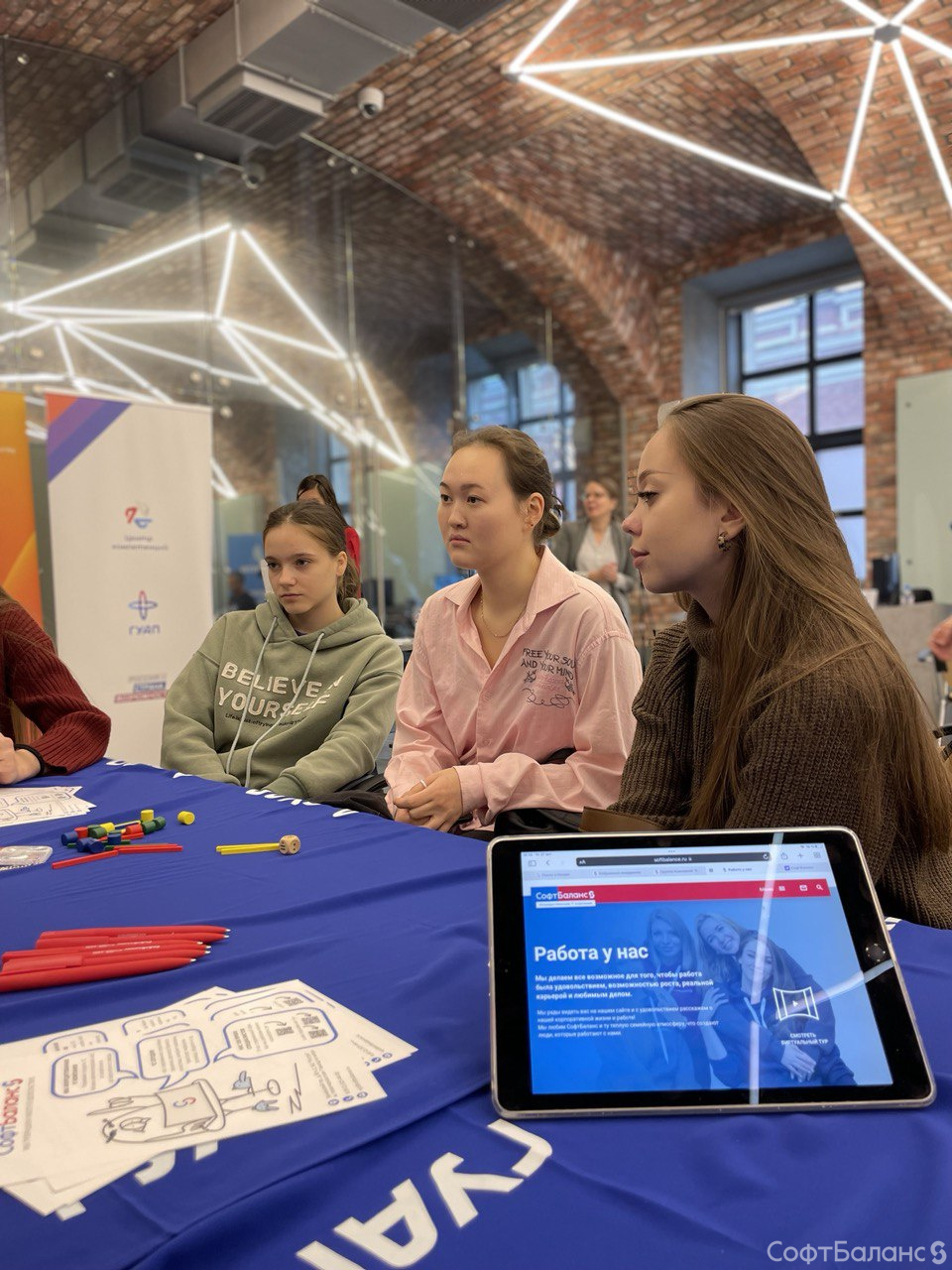 Рассказали и про СофтБаланс: о компании, о наших вакансиях, стажировках и перспективах карьерного роста. Познакомили студентов с основными задачами проектных команд.