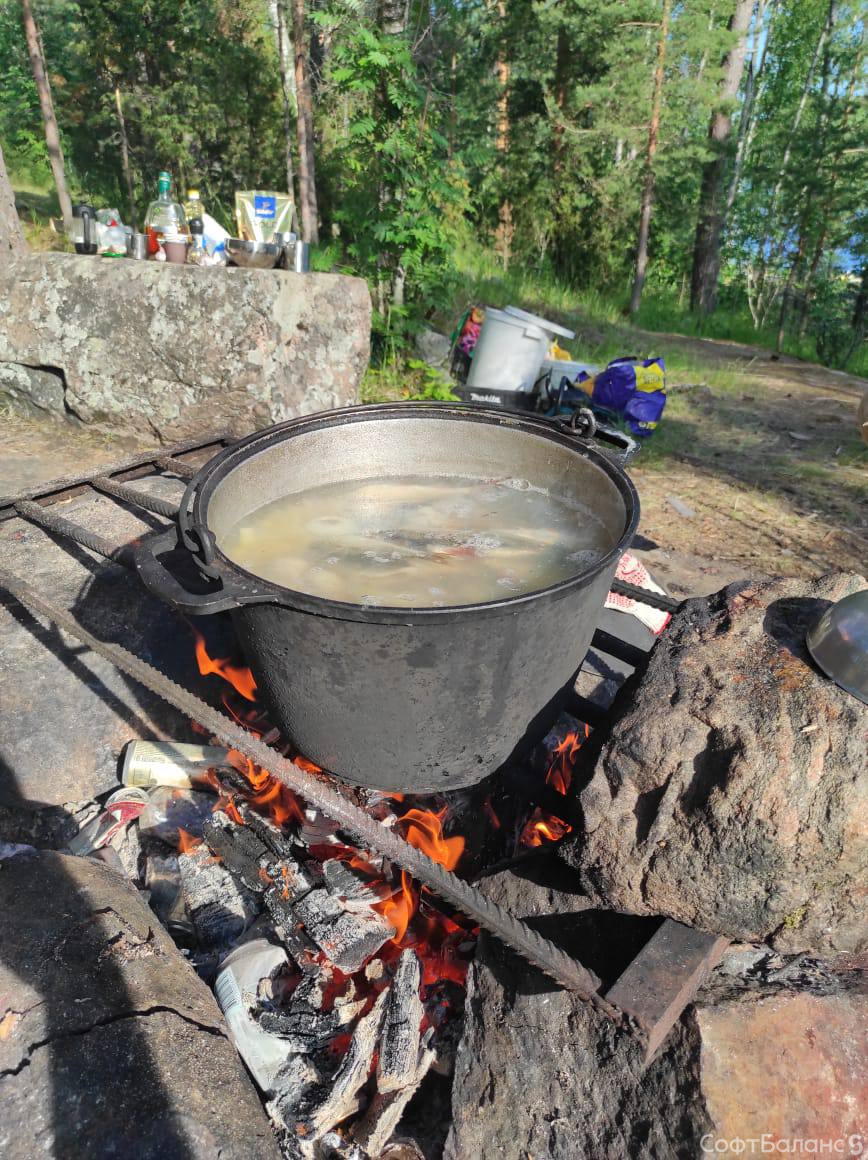 Рыба, кстати, клевалась, несмотря на жару, и на уху хватило. А ещё наши мужчины зажарили северного оленя, покатались на вейкборде и водных лыжах, а по вечерам пели песни под гитару.