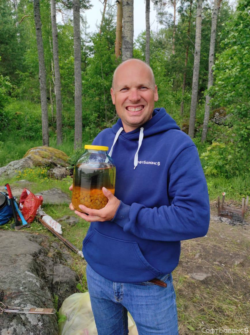 Каждый год наши мужчины уезжают на три дня на один из островов Вуоксы. В этом году выезд был юбилейным – двадцатым – и рекордным по количеству участников: 33 мужчины из СБ отправились на рыбалку!