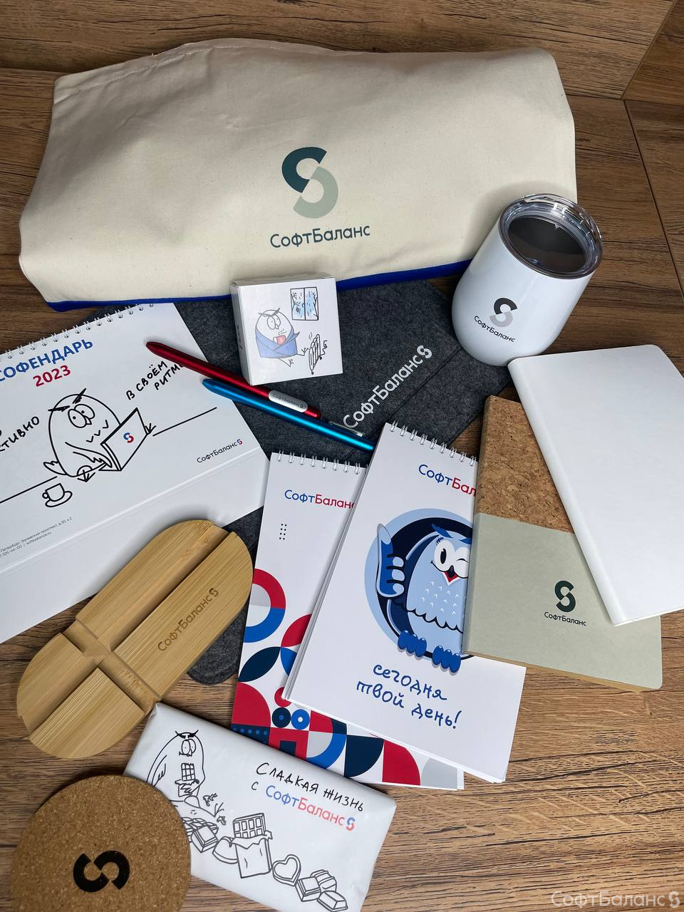 У нас совершенно новые шоперы, блокноты, ежедневники, ручки и т.д.