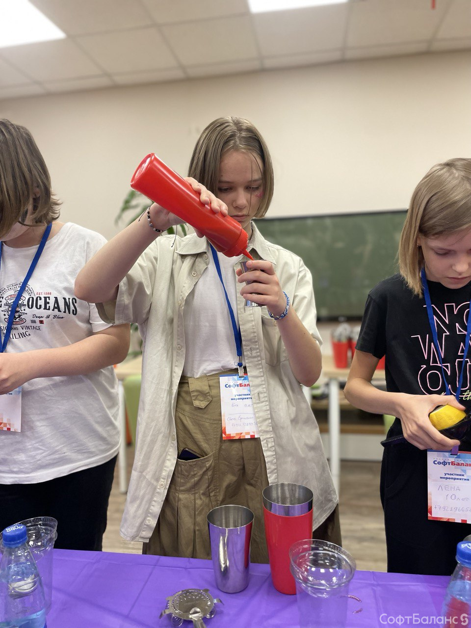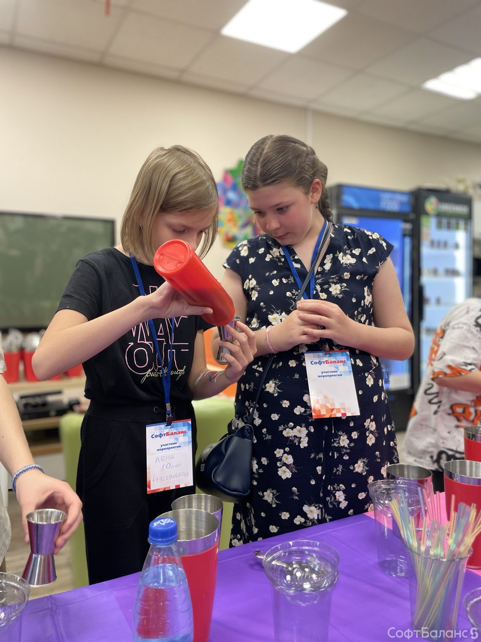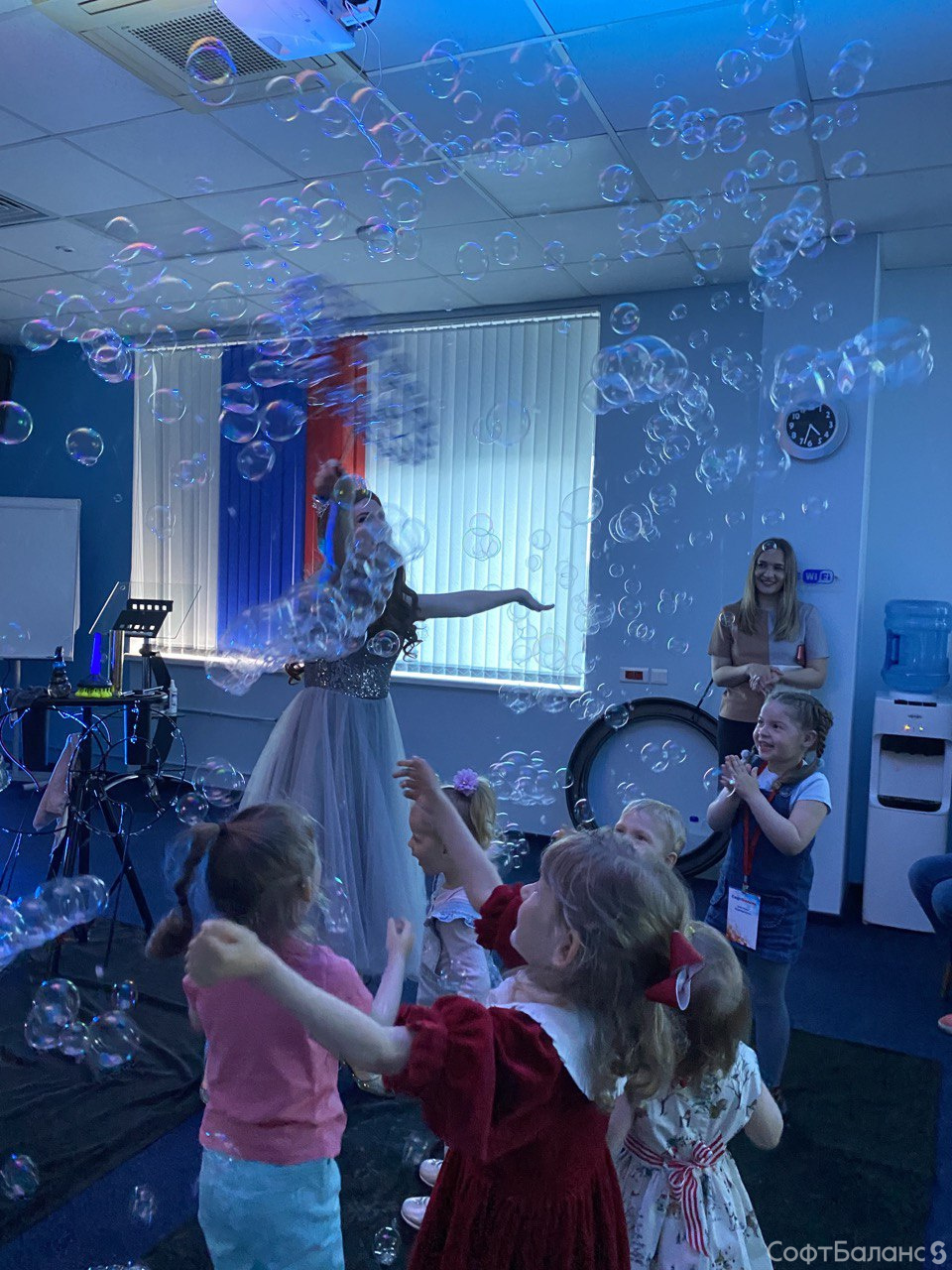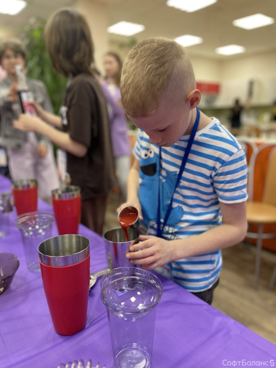 Ребят ждали разнообразные активности: коктейльный мастер-класс для детей постарше, крио-шоу для среднего возраста, шоу мыльных пузырей для малышей, а ещё аквагрим и, конечно же, небольшой фуршет!