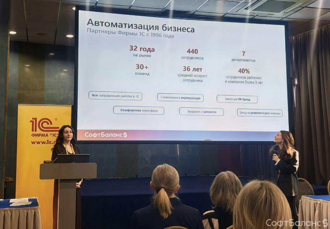 Менеджеры по обучению Анна Минина и Мария Пинкусова также выступили с докладом «Фабрика компетенций: как превратить студента в специалиста». Они рассказали об опыте работы со студентами, курсах «СофтБаланс», сложностях, с которыми сталкивались, и способах их решения.