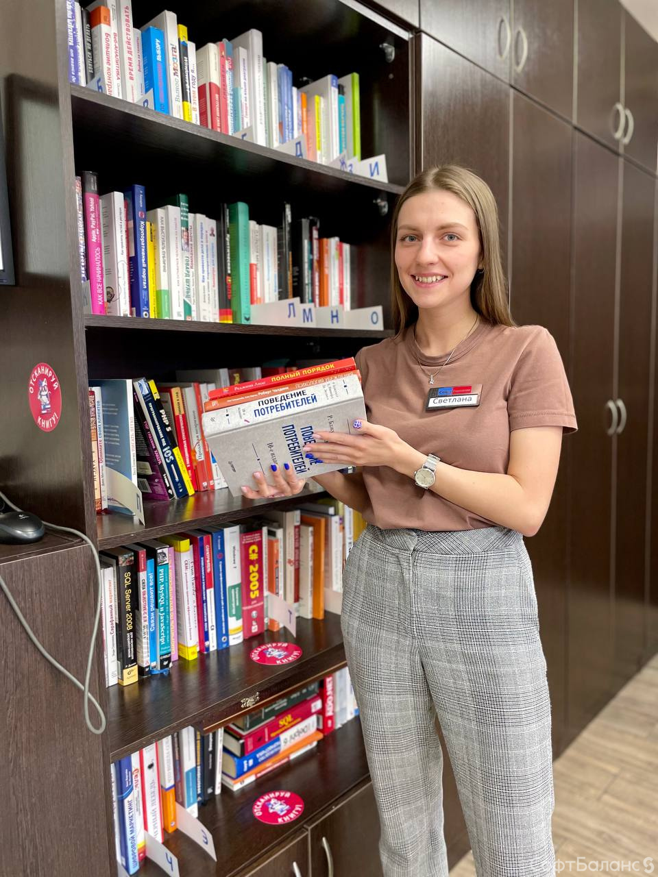 Если вы считаете, что нашей библиотеке не хватает какой-то книги, расскажите об этом ответственной за нашу мини-библиотеку – офис-менеджеру Свете Михалкиной.
