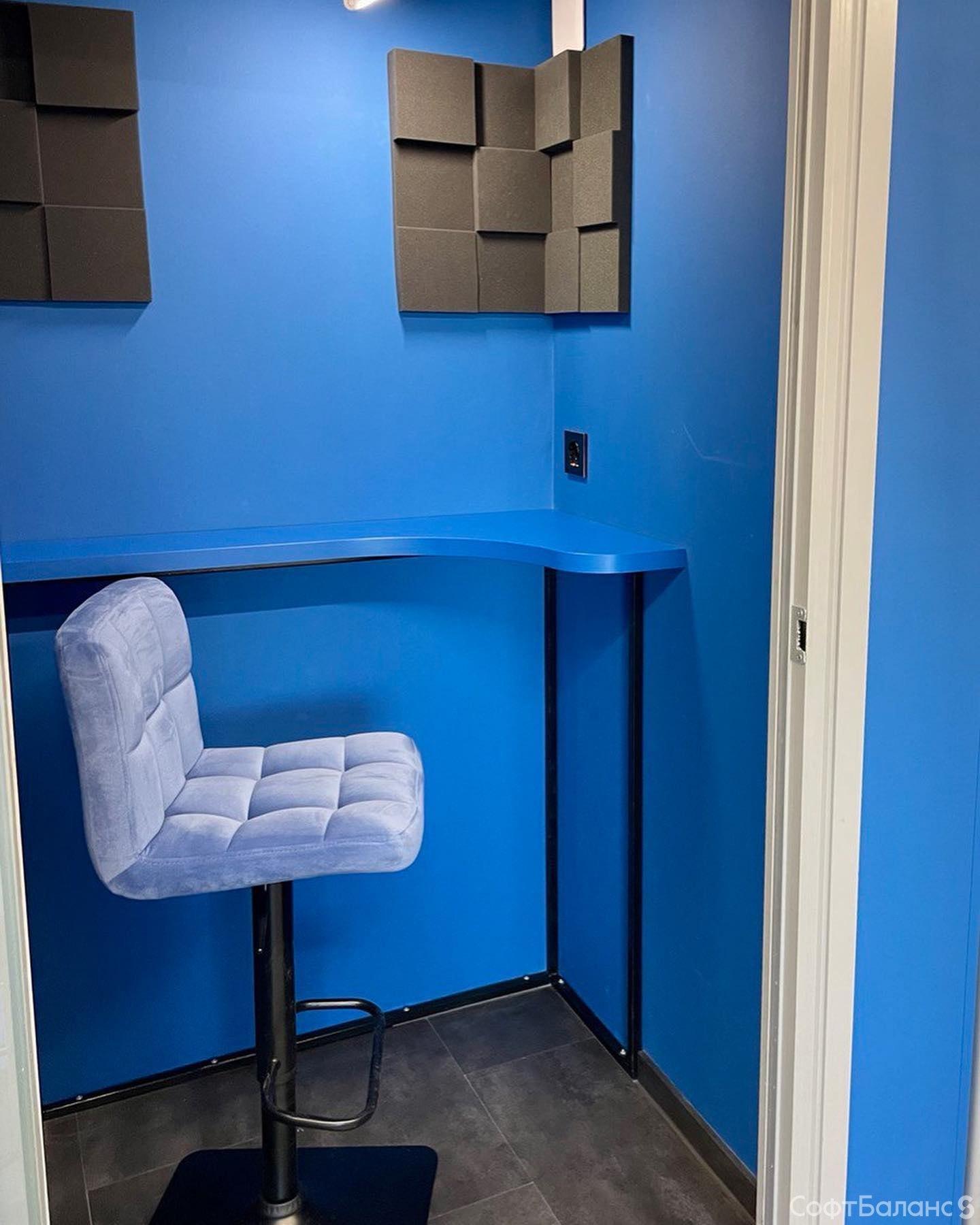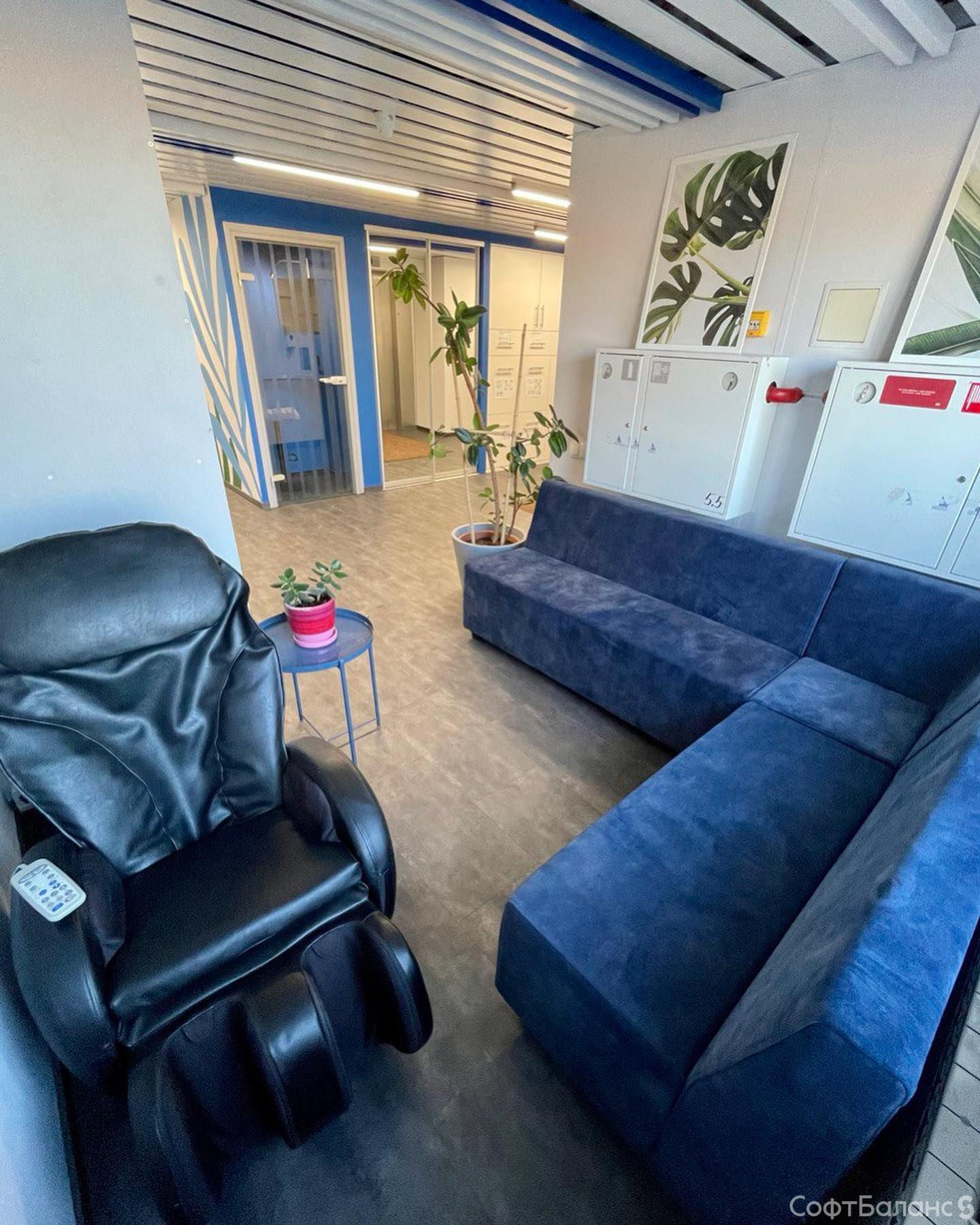 Установили новые диваны и шкафы в зоне дальнего лифта, построили сортировочный шкаф и сделали маленькую переговорку для телефонных звонков – стол для неё Саша варил сам!