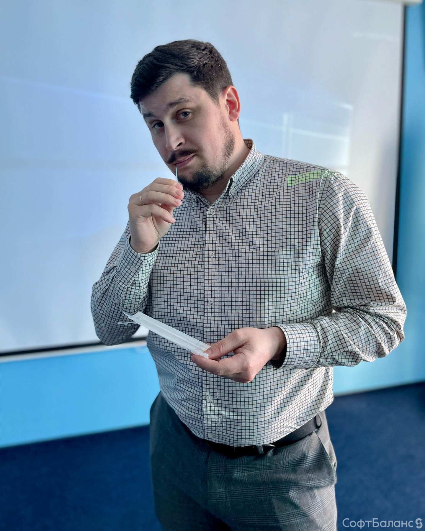 - Или же можно поступить ещё проще и подойти к Вале Худошиной в отдел персонала. Она даст вам анкету и палочки для тестирования. А если Вали не будет на месте, то показать, как правильно сдавать анализ, могут Эльмира Кулиева или Лера Гоголь. Специалист от @crdkm.ru приедет к нам в офис и заберёт ваш анализ.