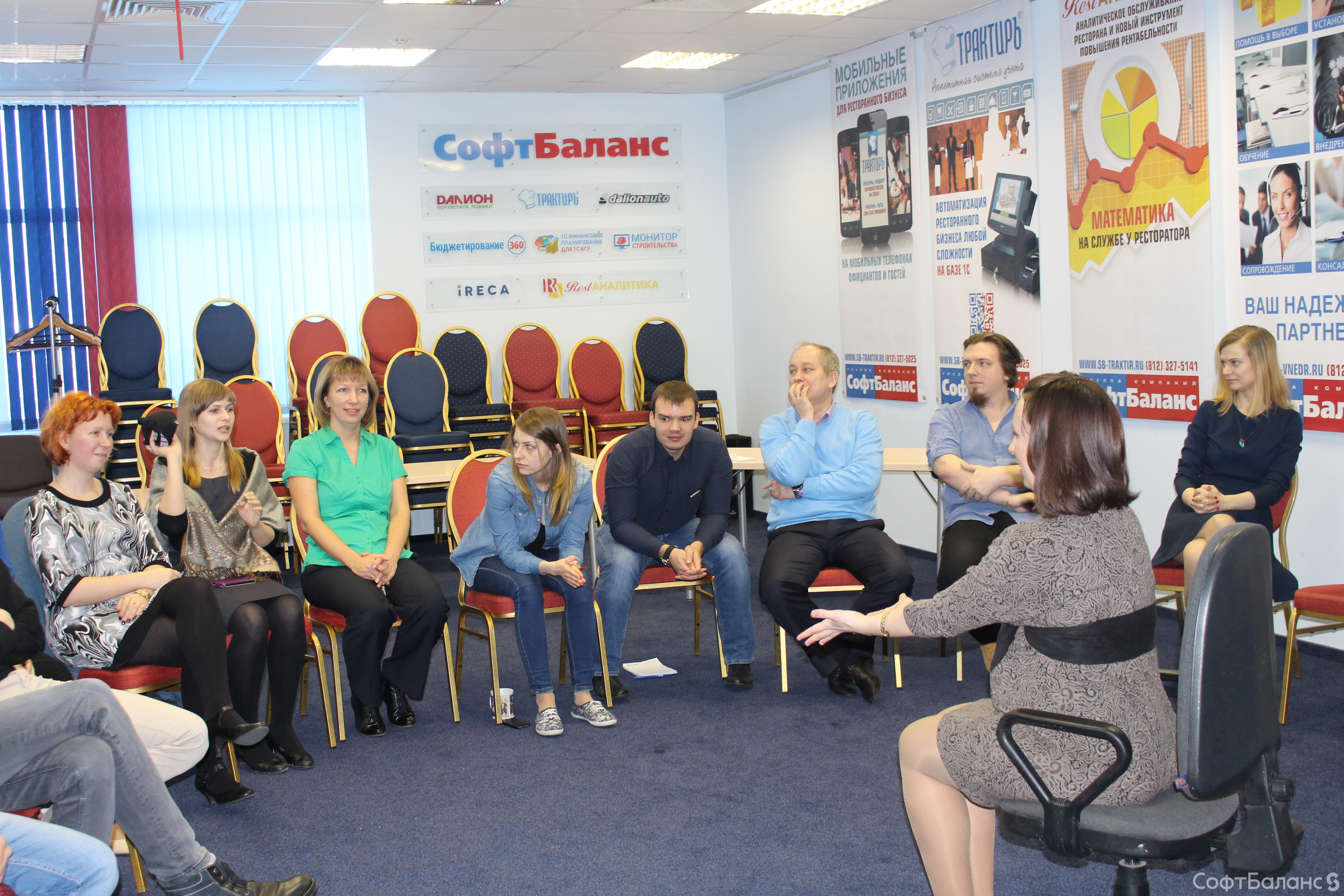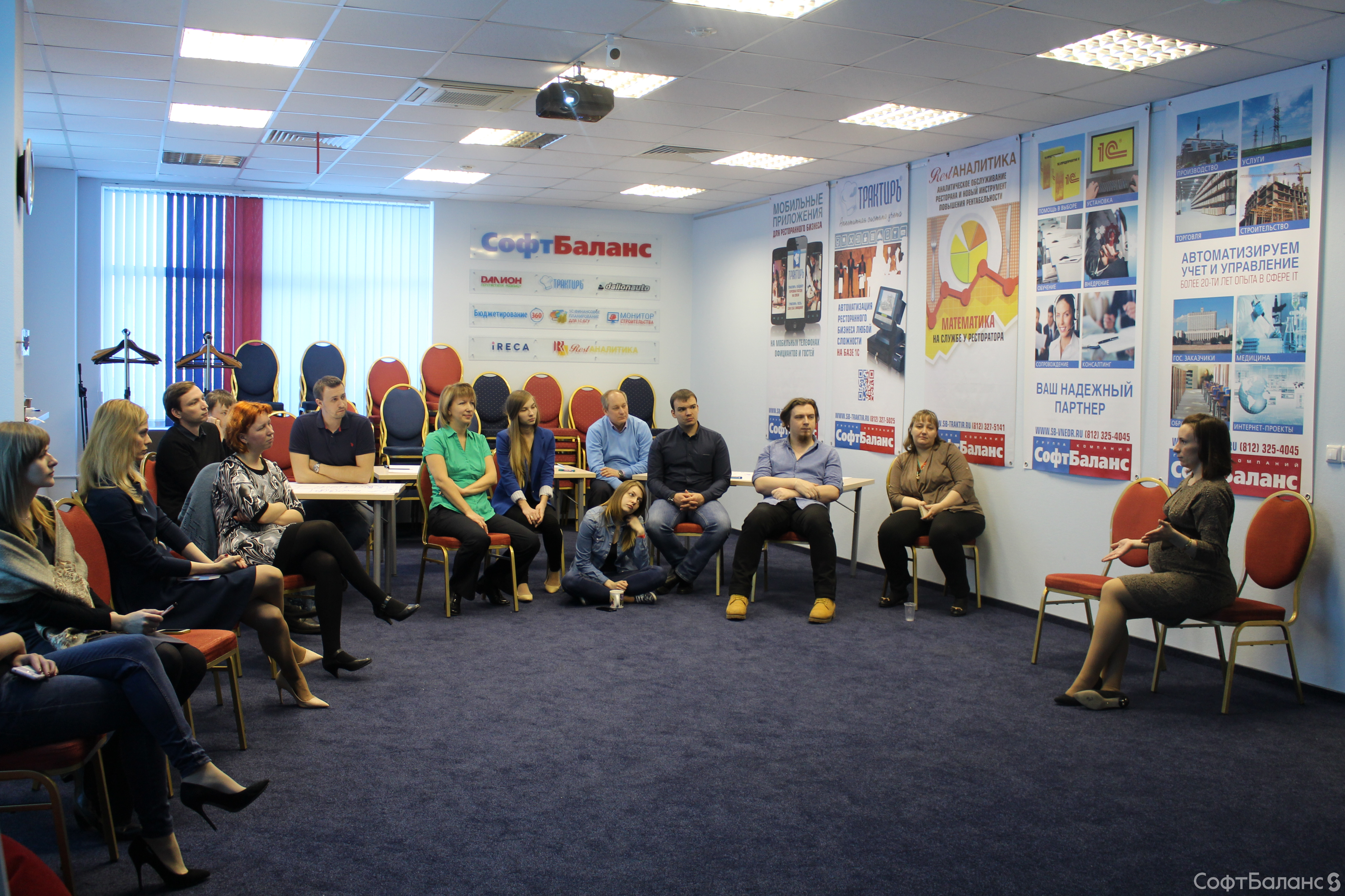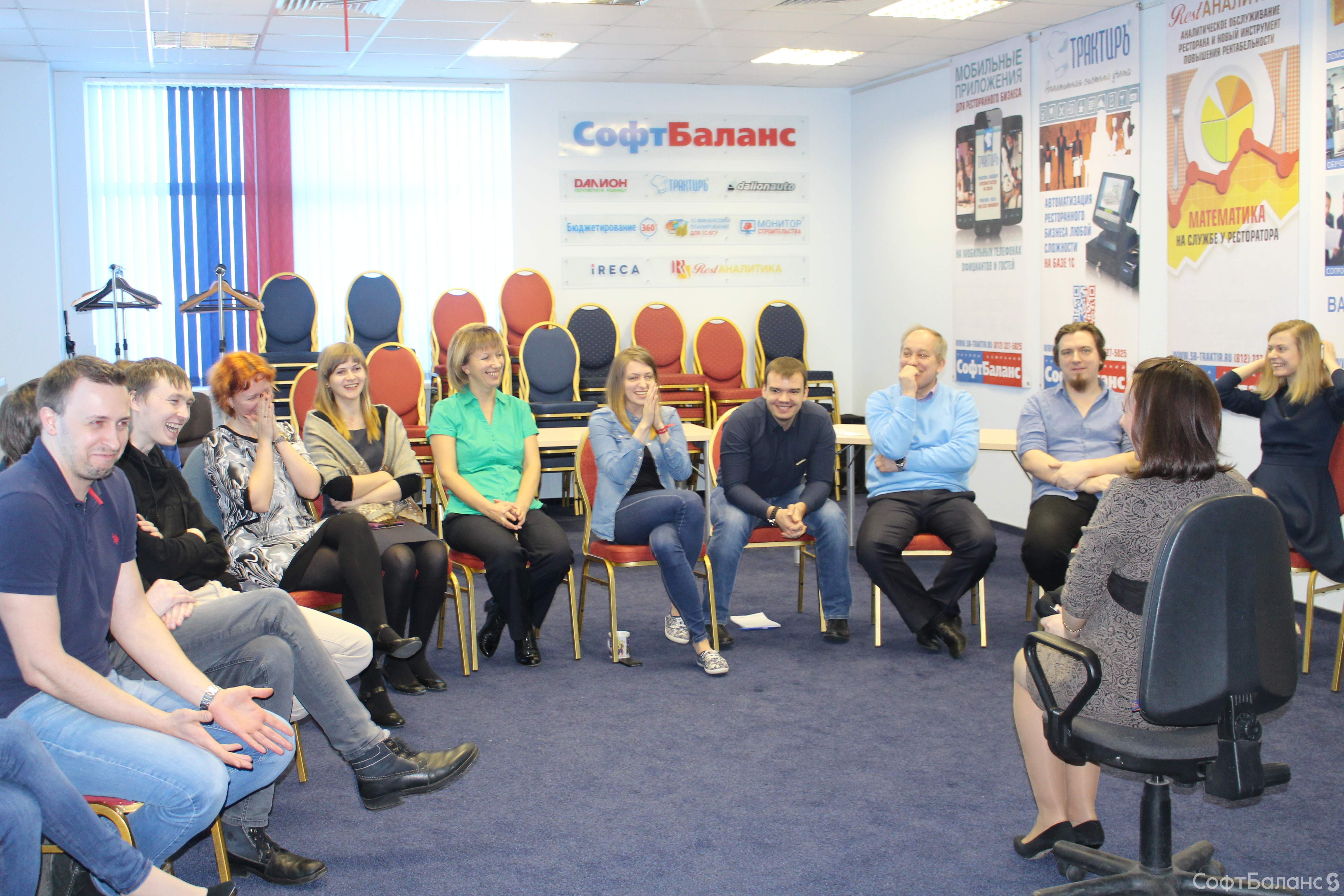 На прошлой неделе 10 февраля новички СофтБаланса собрались на традиционную Welcome-встречу, чтобы получше познакомиться с компанией, друг с другом и Президентом компании Владимиром Каменецким. Мы считаем, что для всех, а особенно для новых членов нашего коллектива, очень важно иметь возможность задать вопросы и получить на них ответы, и все это в дружеской, неформальной обстановке, перемежая просмотр презентации о компании с чае-/кофепитием и игровыми «движухами». Эта встреча запомнилась нам особо, ведь в этот день мы проводили в декрет нашего замечательного менеджера по персоналу Евгению. Мы все желаем ей счастливого материнства и ждем ее возвращения ;)