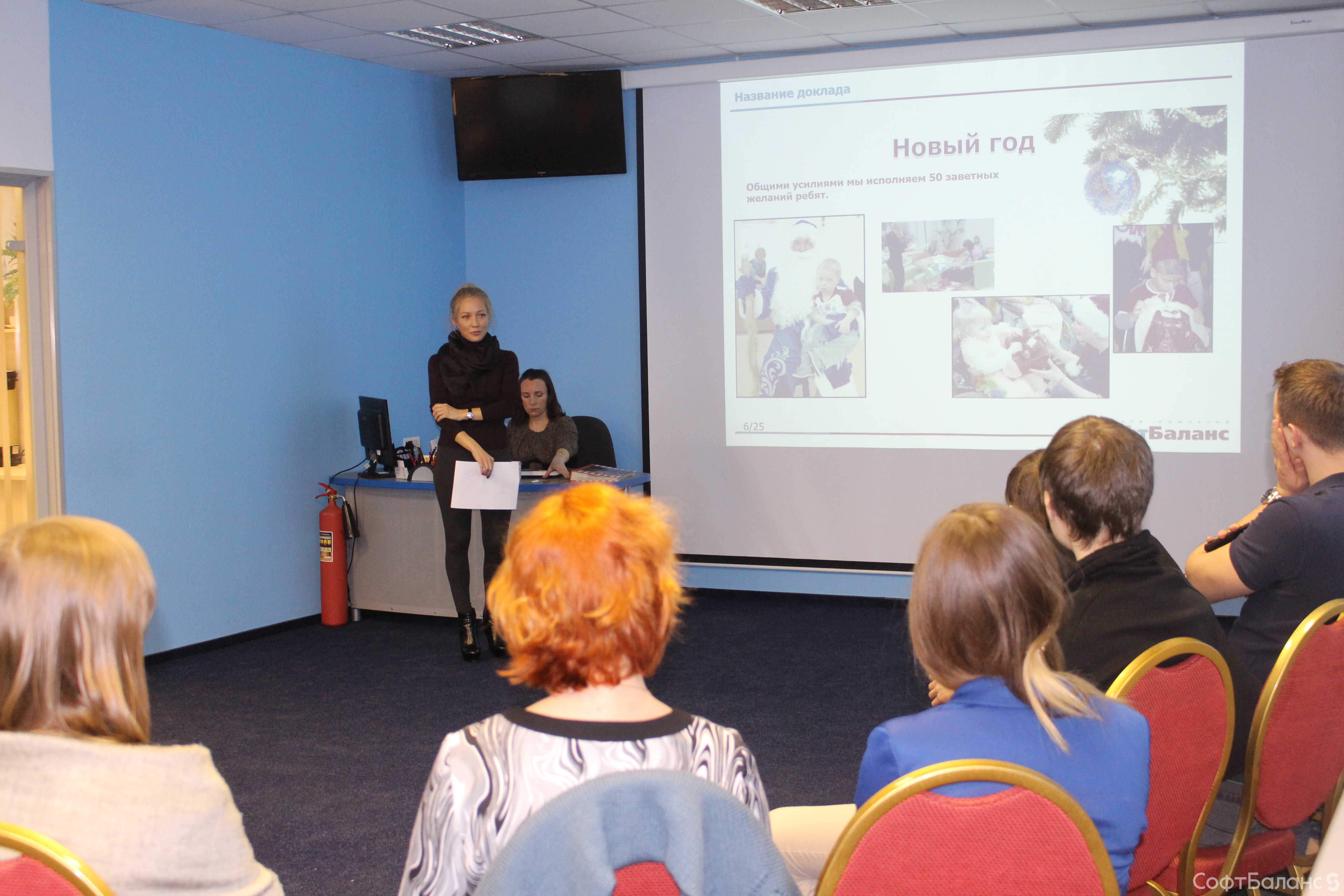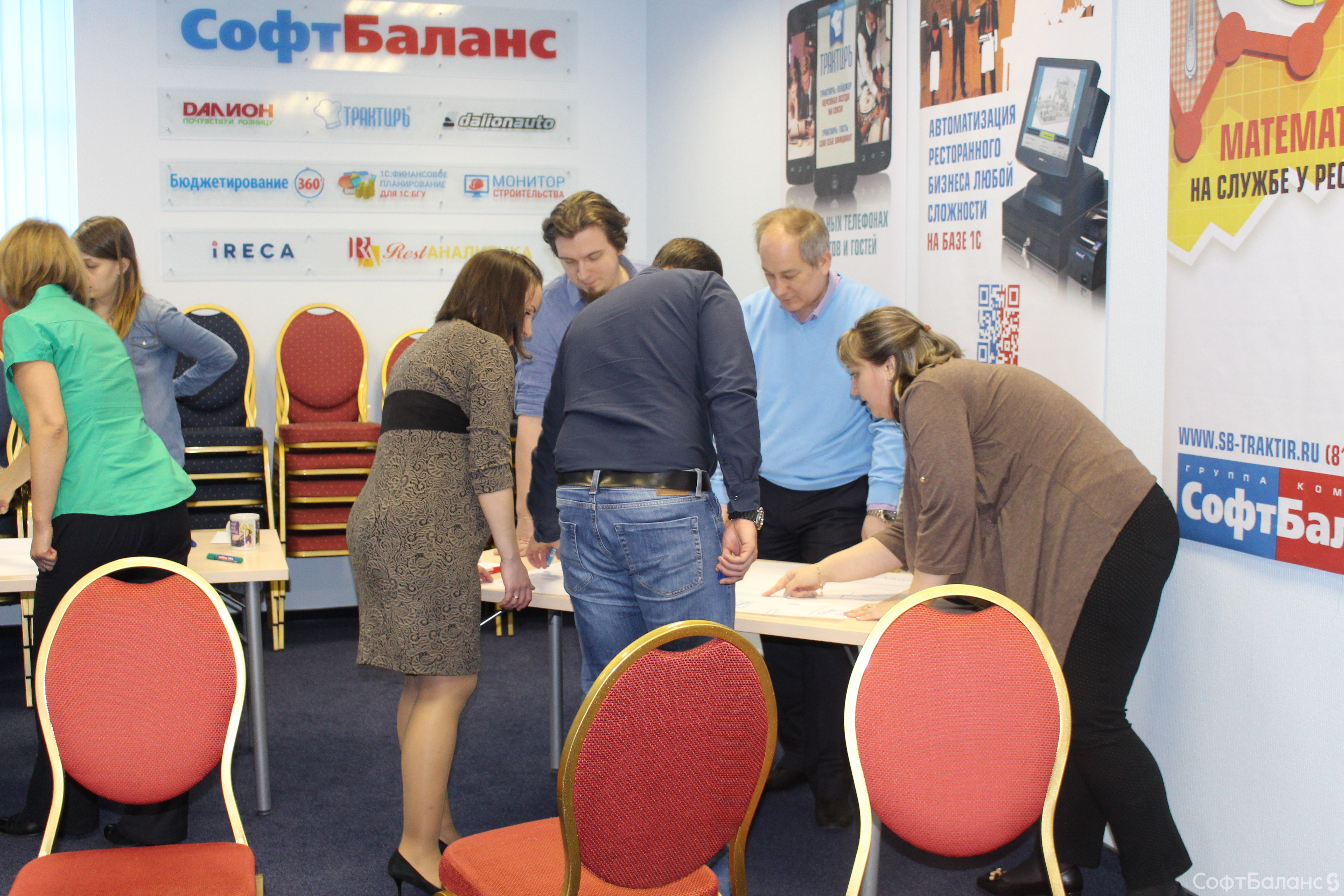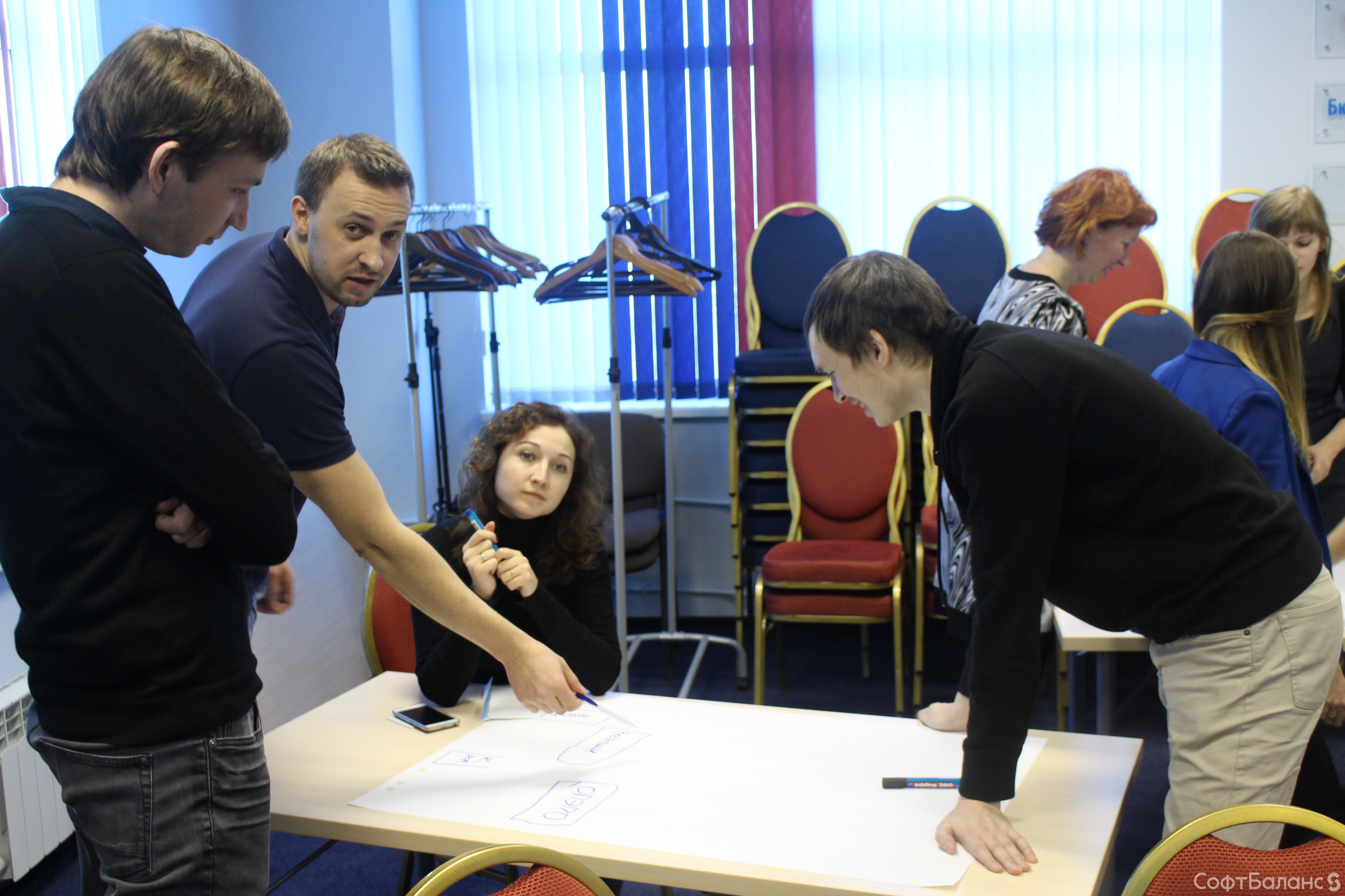 На прошлой неделе 10 февраля новички СофтБаланса собрались на традиционную Welcome-встречу, чтобы получше познакомиться с компанией, друг с другом и Президентом компании Владимиром Каменецким. Мы считаем, что для всех, а особенно для новых членов нашего коллектива, очень важно иметь возможность задать вопросы и получить на них ответы, и все это в дружеской, неформальной обстановке, перемежая просмотр презентации о компании с чае-/кофепитием и игровыми «движухами». Эта встреча запомнилась нам особо, ведь в этот день мы проводили в декрет нашего замечательного менеджера по персоналу Евгению. Мы все желаем ей счастливого материнства и ждем ее возвращения ;)
