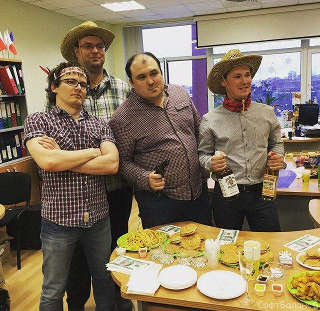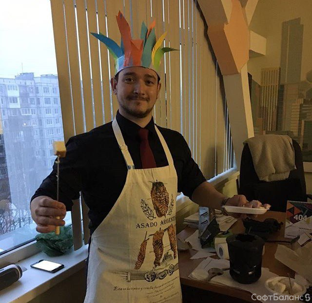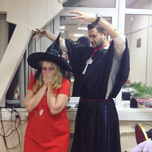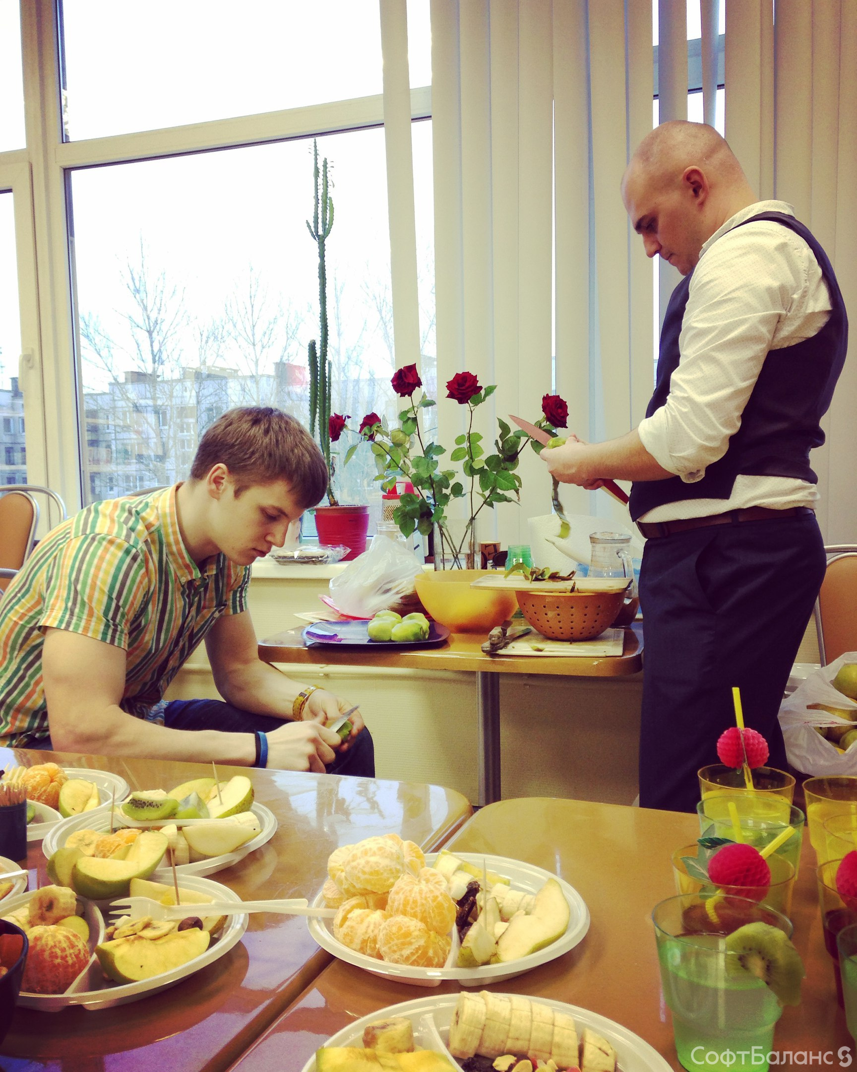 Настал черед прекрасных дам СофтБаланса принимать поздравления! По традиции, на входе девушкам дарили розы, а весь офис был украшен цветами.